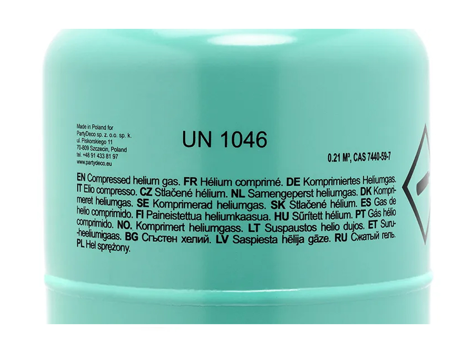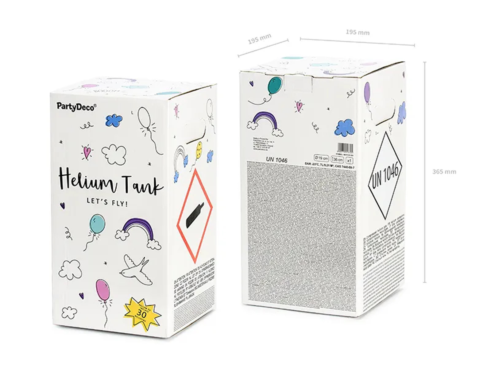 Butelia este de unică folosință, nu poate fi reumplută. Cilindrul de heliu este potrivit pentru umplerea baloanelor din latex și folie. Heliul din baloanele din latex durează între 5 și 7 ore dacă nu folosiți un agent de etanșare Hi-Float. Heliul poate fi, de asemenea, umplut în baloane de folie. Baloanele din folie prea mici sau prea grele nu vor pluti.