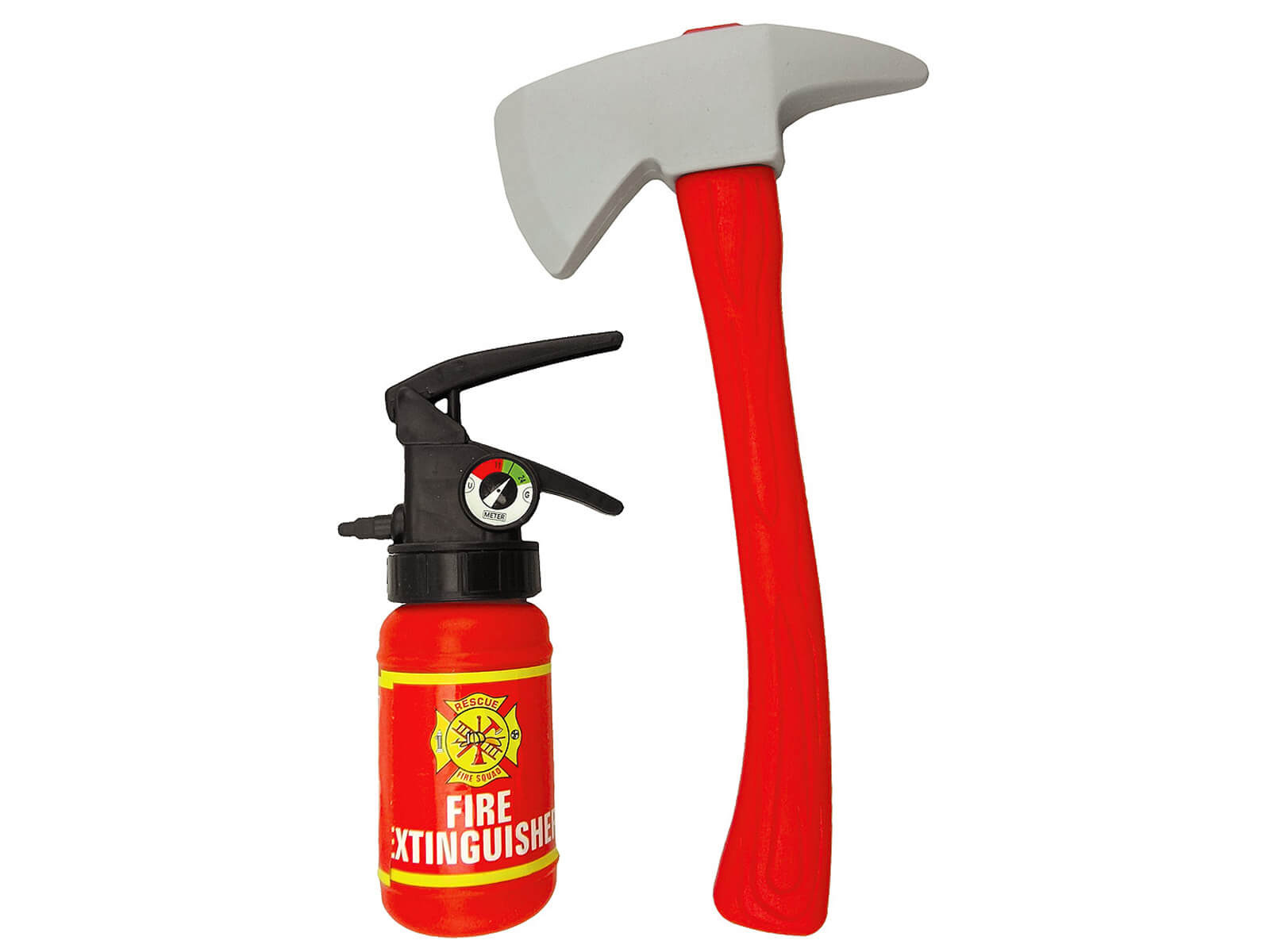 Completarea perfectă pentru un costum de pompier pentru orice mic erou! Setul nostru de pompieri din plastic este conceput pentru a inspira jocul creativ și educațional pentru copii. Setul include două articole: un topor lung de 26 cm și un extinctor lung de 17 cm, perfect adaptat la mâna copilului.