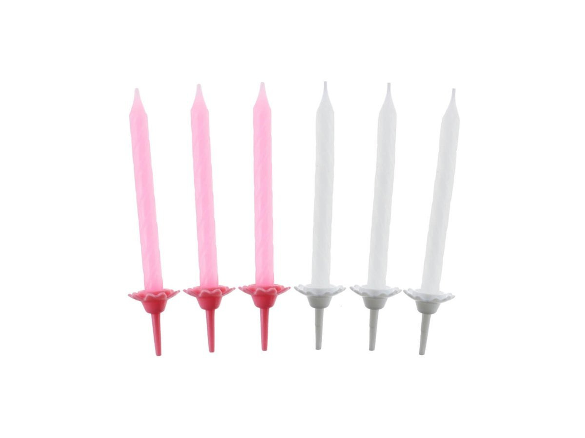 Lumânări aniversare roz deschis și alb - 24 buc.