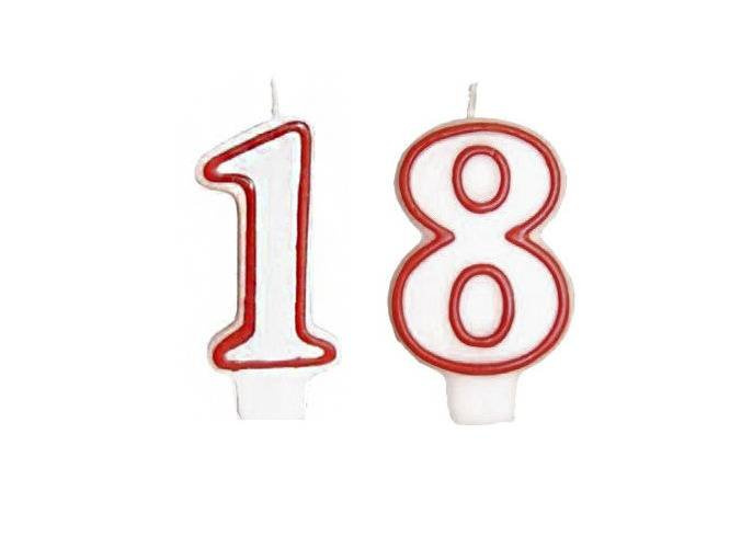 Lumânări numerice cu margine roșie - 18 - optsprezece - 2 buc.
