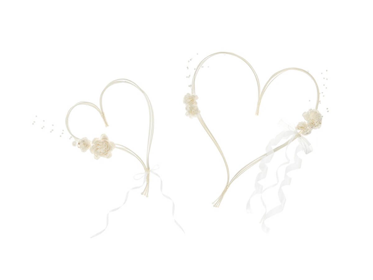 Inimi din ratan cu buchete de cremă pe ventuze pentru mașină - 2 buc.