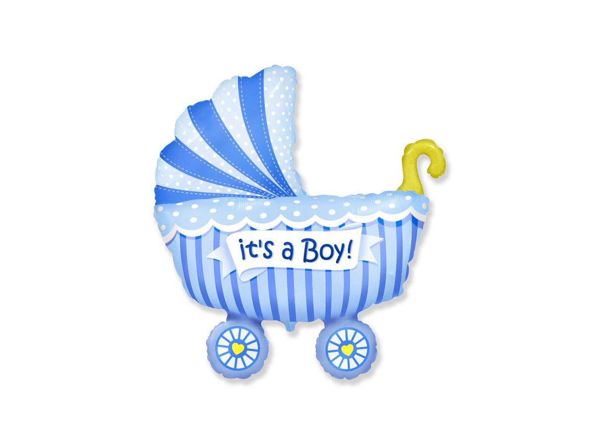 Balon din folie de lipit - Cărucior albastru - 34 x 28 cm - 1 buc.