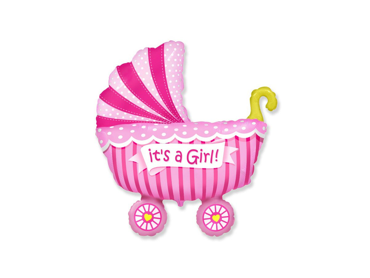 Balon din folie de lipit - Cărucior roz - 34 x 28 cm - 1 buc.