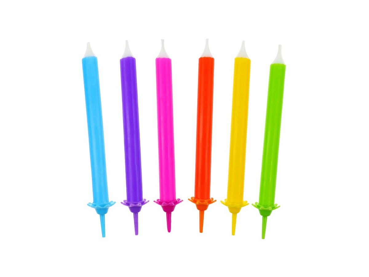 Lumânări aniversare curcubeu lungi - 12 buc.