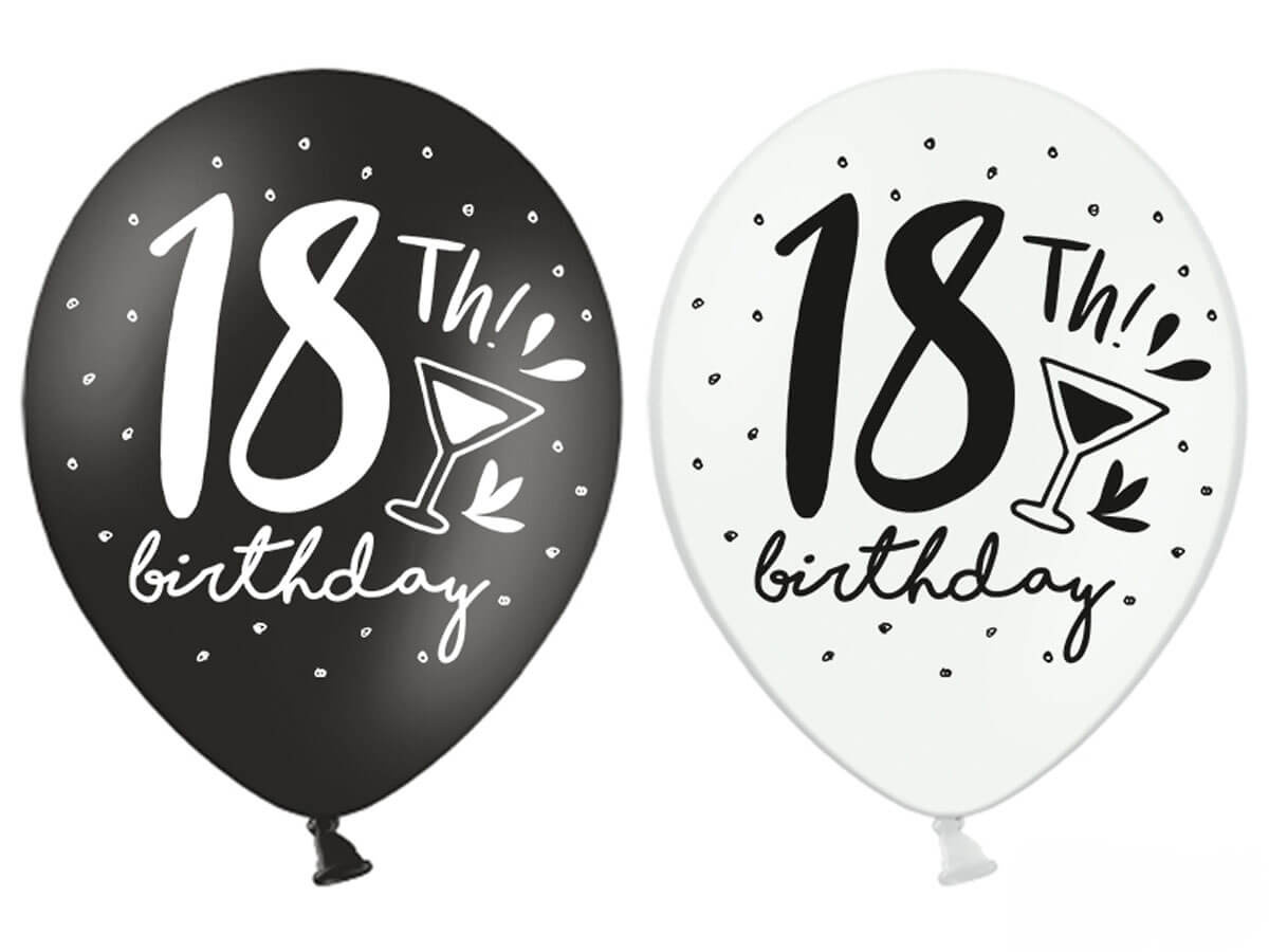 Baloane din latex imprimate 18! ziua de nastere negru si alb - 30 cm - 6 buc.