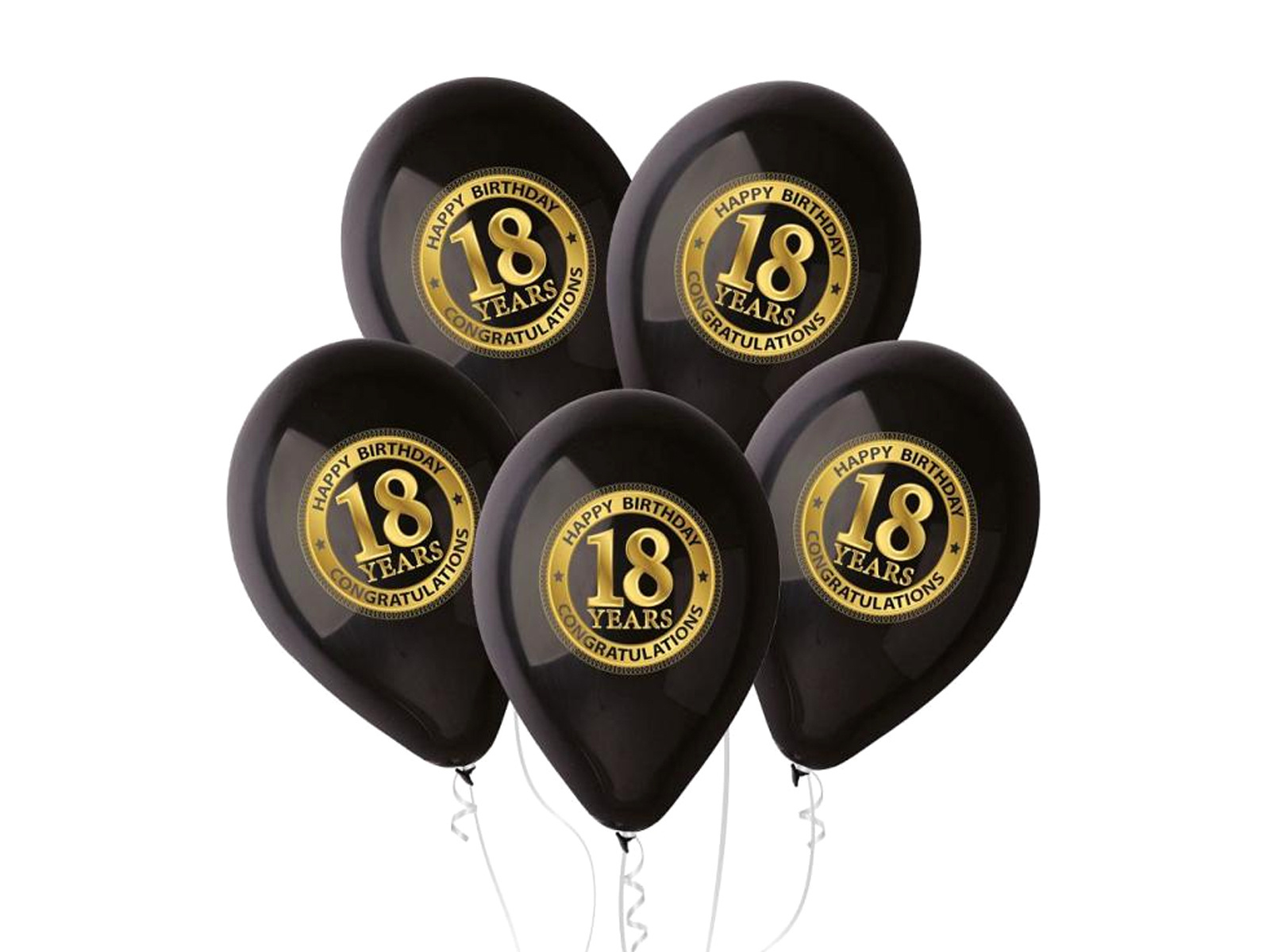 Baloane latex imprimate "18" negru - 30 cm - 5 buc.