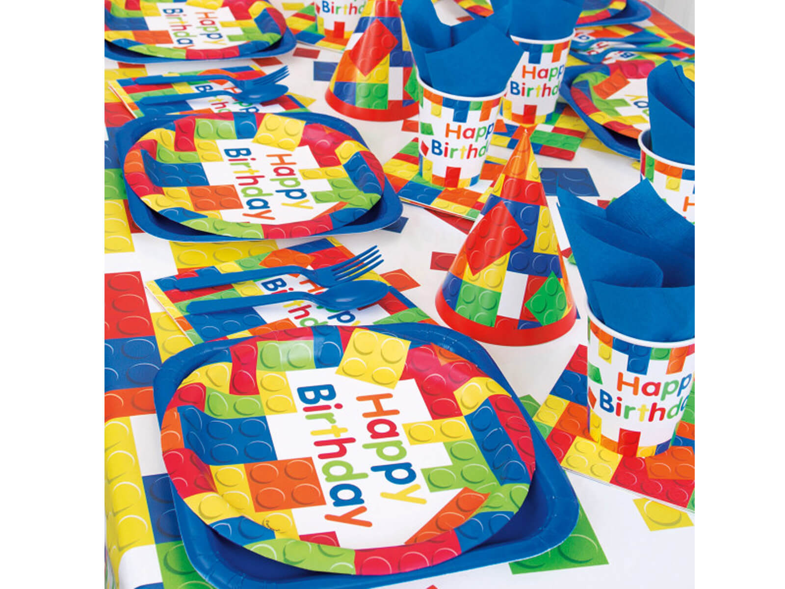 Farfuriile sunt o alegere ecologică, deoarece pot fi reciclate cu ușurință după eveniment, ceea ce le face atât ecologice, cât și convenabile de utilizat. Perfecte pentru micii fani ai construcțiilor și ai jocului cu blocuri, acestea adaugă o notă creativă decorării mesei.