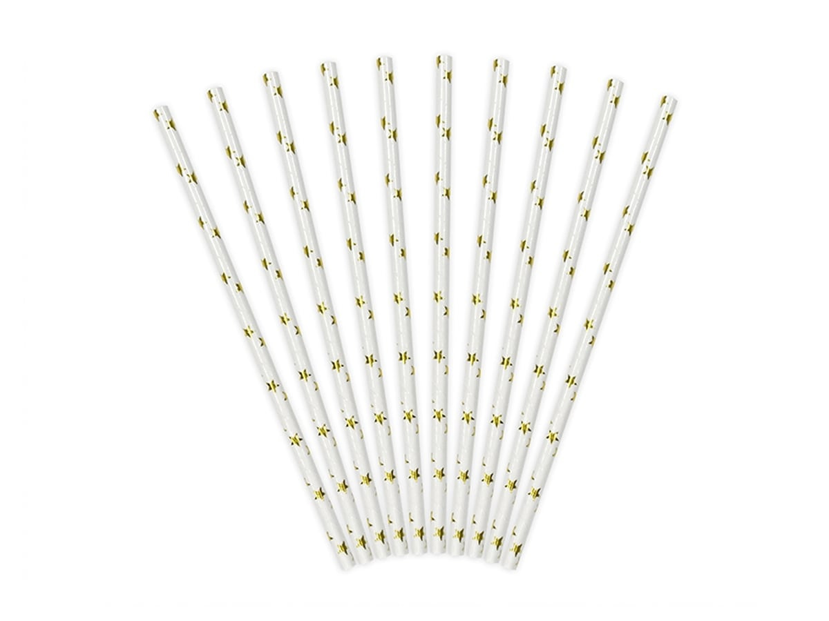 Paie tub alb cu stele aurii - 10 buc.