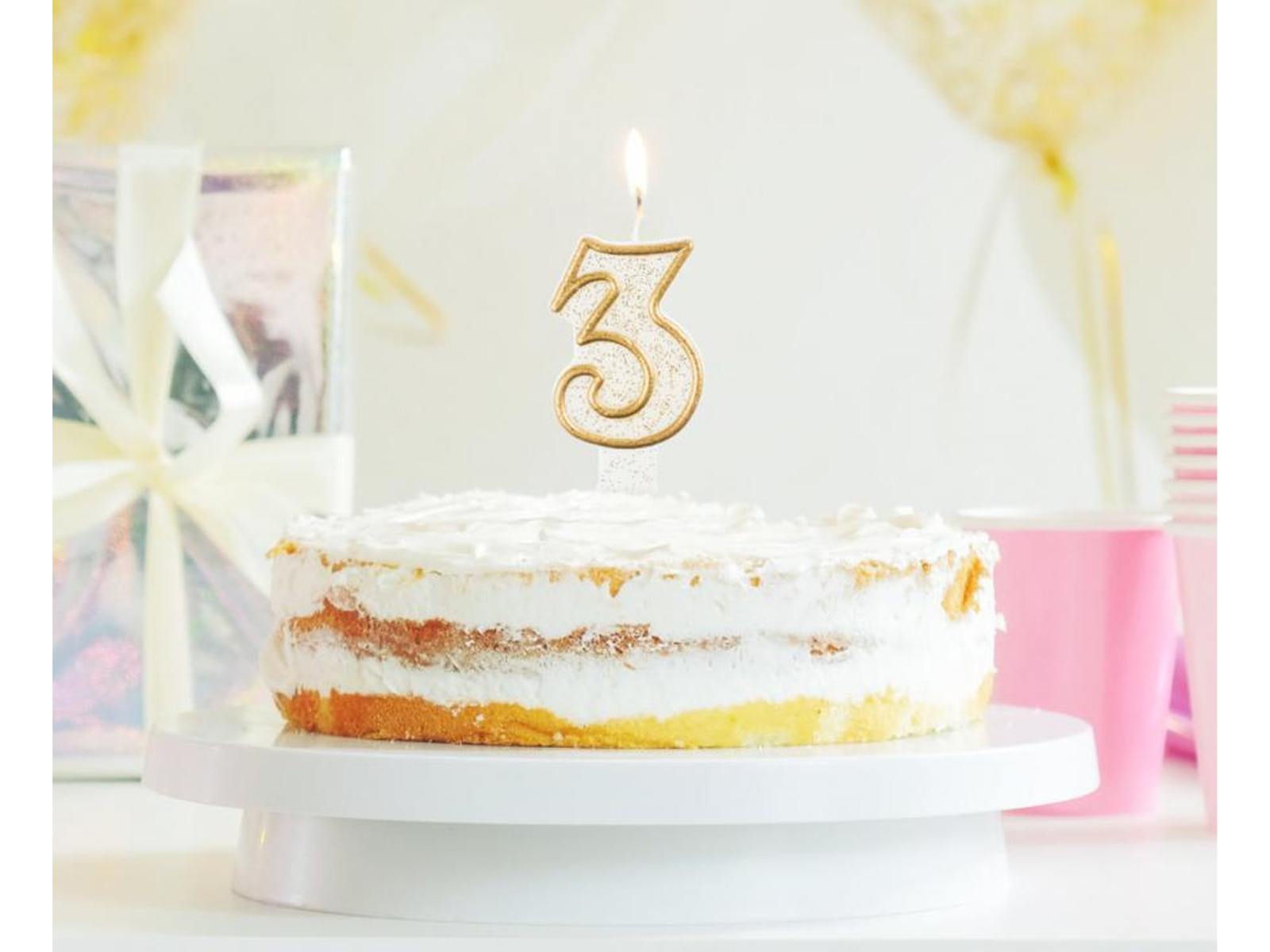 Lumânare numerică cu margine aurie și sclipici - 3 - 1 buc.