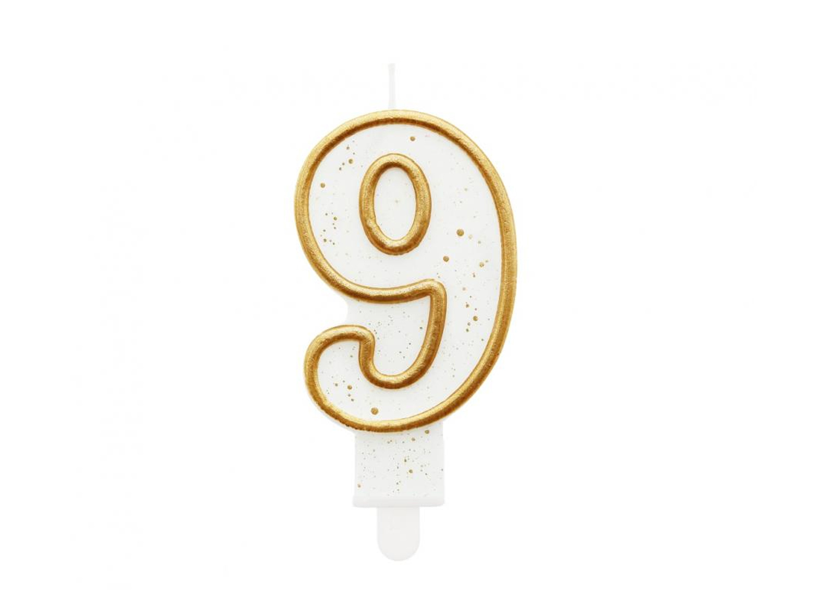 Lumânare numerică cu margine aurie și sclipici - 9 - 1 buc.