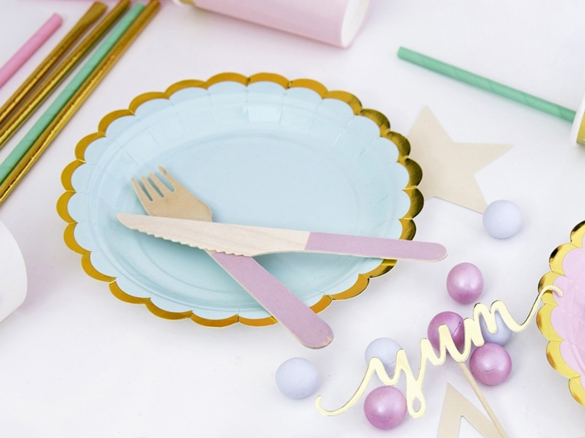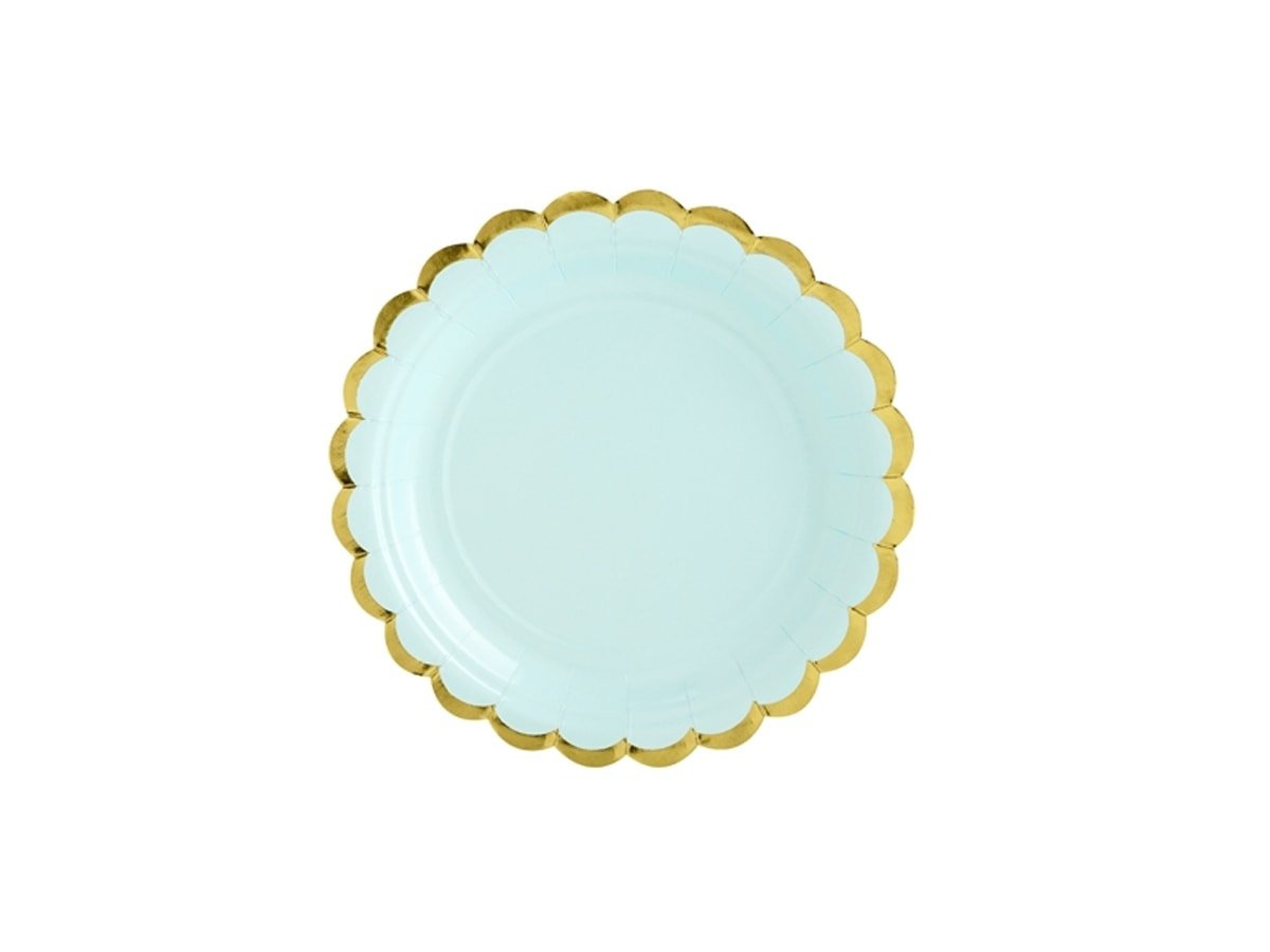Pregătiți o masă incredibil de fermecătoare la petrecerea dvs. cu aceste frumoase farfurii de hârtie într-o nuanță delicată de mentă/turcoaz cu o margine aurie elegantă. Aceste farfurii unice vor adăuga o notă specială de farmec și clasă oricărei ocazii, fie că este vorba de o zi de naștere, o petrecere pentru copii sau o întâlnire cu prietenii.