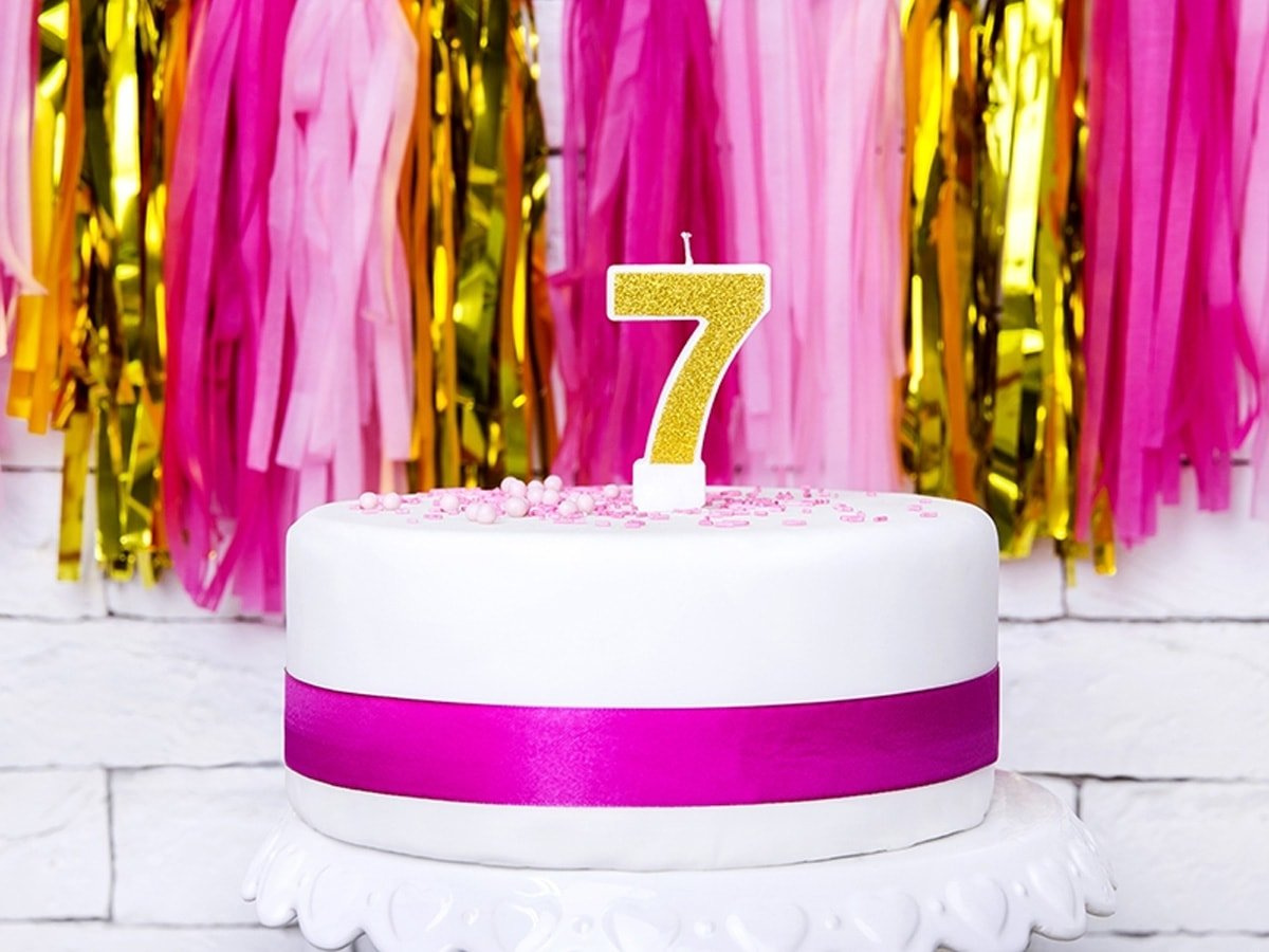 Numărul șapte: Lumânarea are forma numărului "7", ceea ce o face accesoriul perfect pentru o a șaptea aniversare, creând un decor impresionant pe un tort sau alte dulciuri.