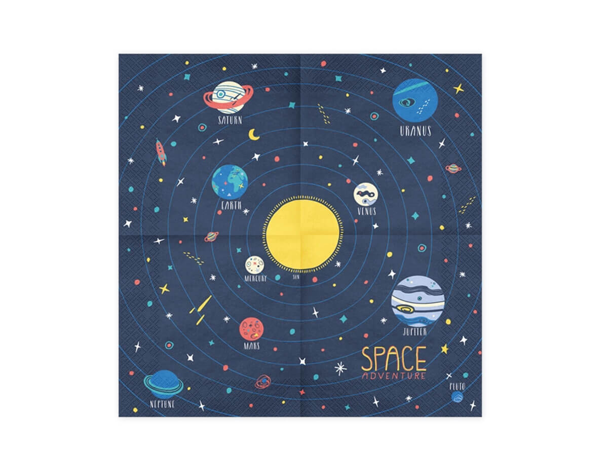 Șervețelele albastru marin imprimate Cosmos sunt alegerea perfectă de decor pentru a vă transporta petrecerea în spații îndepărtate și misterioase. Iată de ce ar trebui să optați pentru ele: