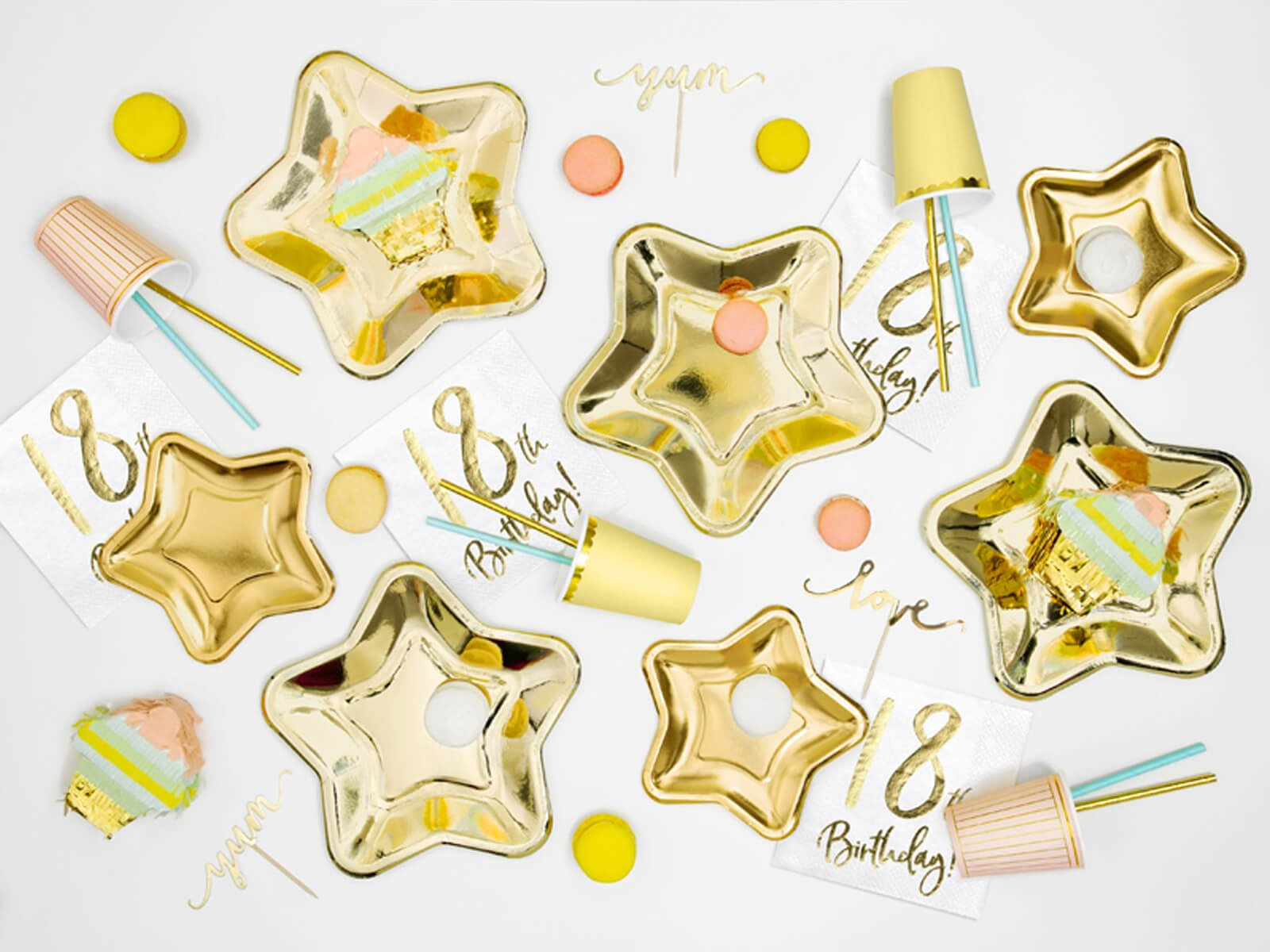 Înveselește-ți petrecerea cu elegantele noastre farfurii cu stele aurii. Aceste farfurii de unică folosință cu un diametru de 23 cm sunt ideale pentru o varietate de ocazii, cum ar fi zilele de naștere, Ajunul Anului Nou, Ziua Anului Nou, precum și alte evenimente speciale. Concepute ținând cont de confort și stil, acestea vor adăuga farmec oricărei mese.
