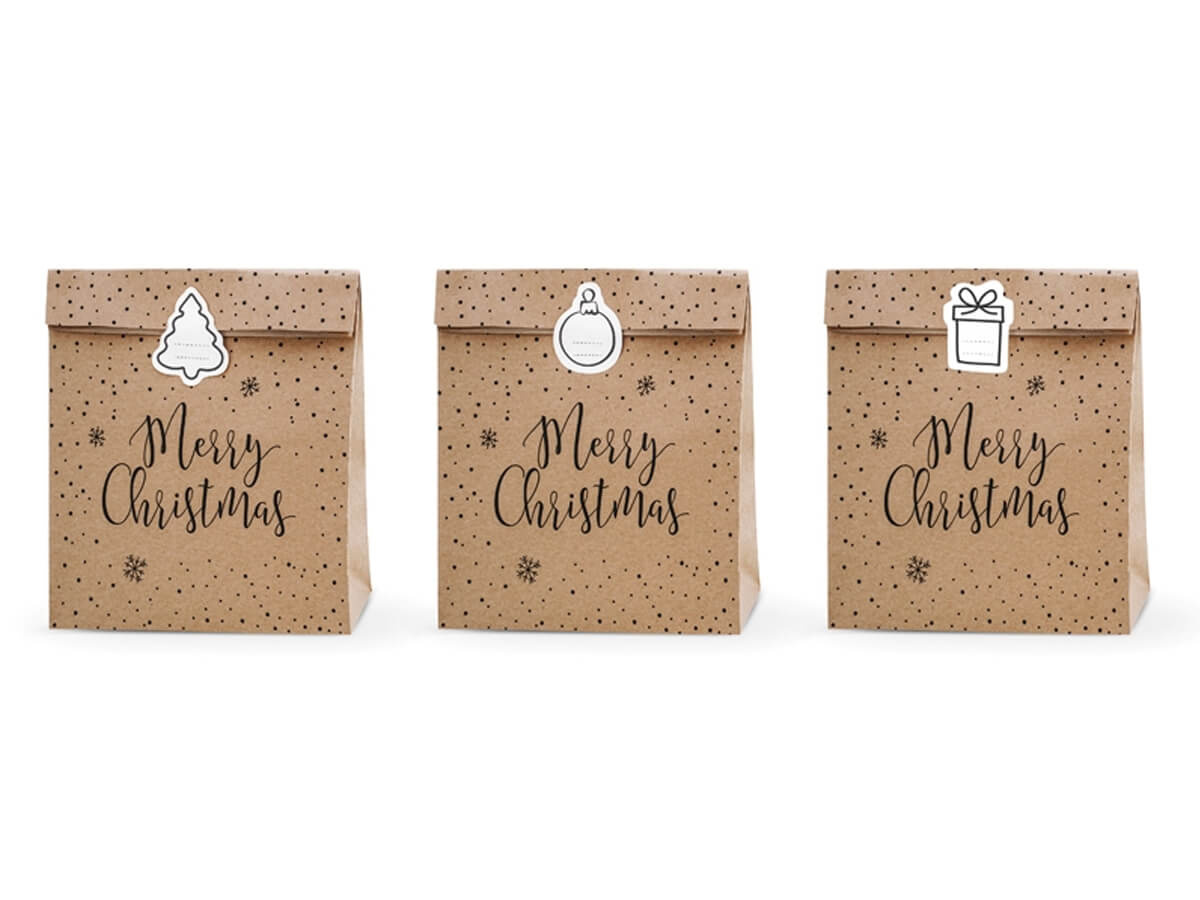 Dați cadourilor de sub bradul de Crăciun o notă specială cu pungi de cadouri Crăciun fericit. Fabricate din hârtie kraft ecologică, care nu sunt doar durabile, ci și estetice, încurajând valorile ecologice. Imprimeul cu motive de Crăciun adaugă o notă festivă și face fiecare cadou și mai special.