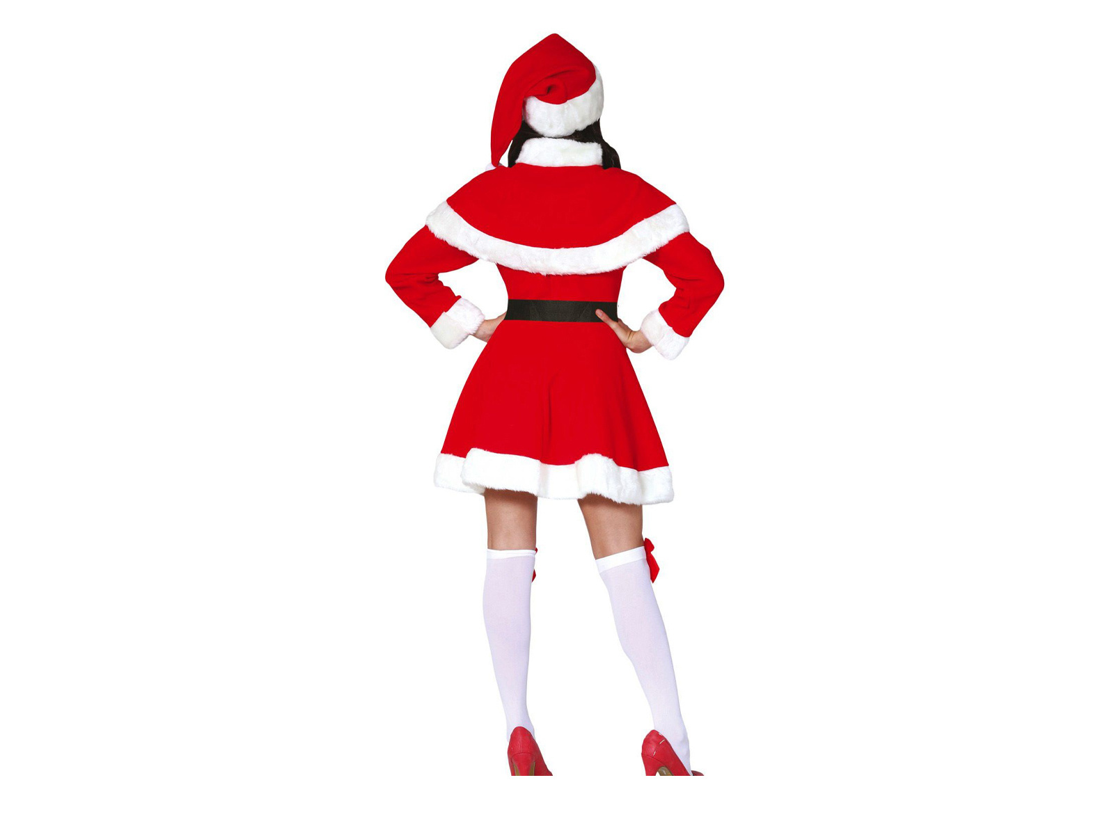 Setul include tot ce aveți nevoie pentru a crea aspectul perfect de Moș Crăciun. O rochie roșie cu blană albă, o pălărie semnată cu pompoane, o pelerină și o curea pentru a accentua talia alcătuiesc un ansamblu plin de farmec.