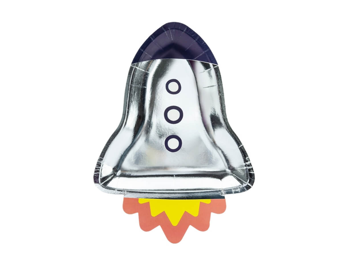 Bucurați-vă de o aventură cosmică cu farfuriile noastre Cosmos! Disponibile într-un set de 6, acestea vor fi perfecte pentru orice petrecere aniversară pentru micul astronaut. Fiecare farfurie are o formă unică de rachetă, măsurând 21,5 x 29,5 cm, care atrage imediat atenția și contribuie la farmecul întregului eveniment.