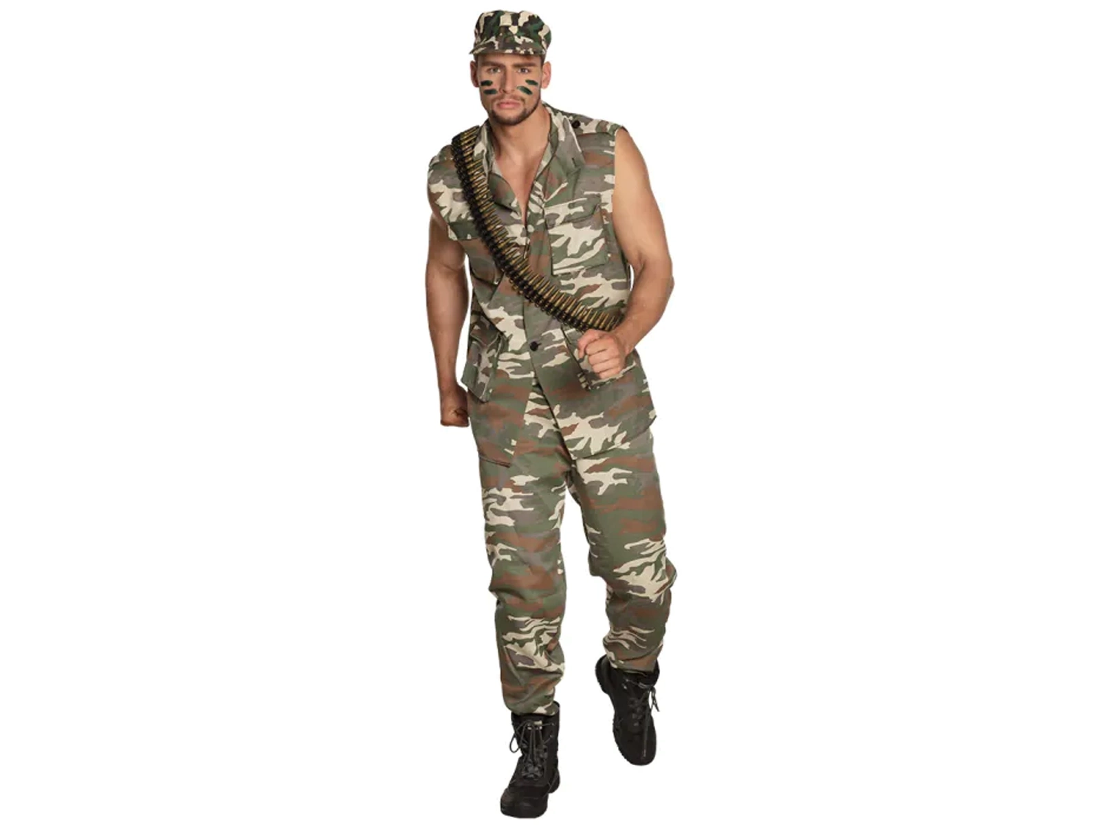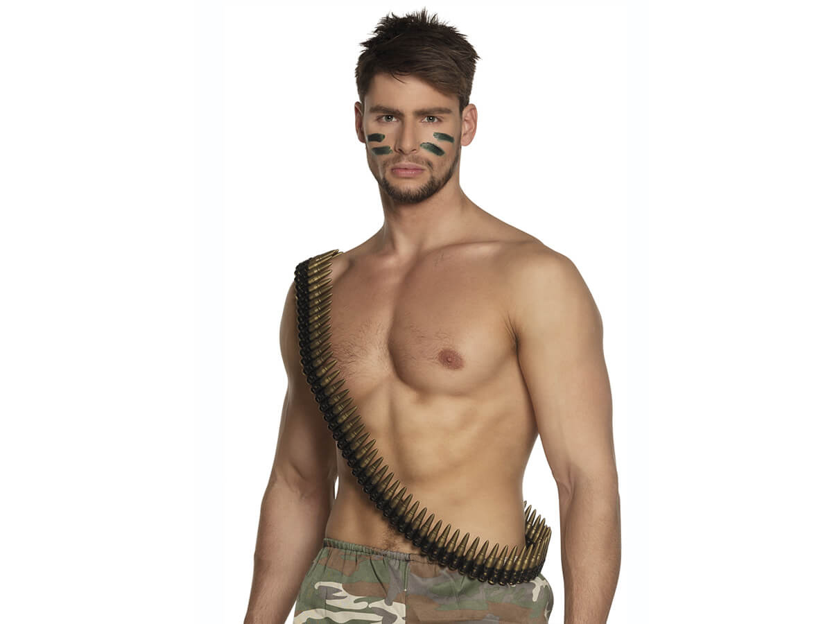 Vă prezentăm accesoriul perfect pentru orice costum militar - Centura cu gloanțe. Acest accesoriu unic are o lungime de 160 cm, ceea ce îi permite să fie purtat confortabil de persoane cu diferite circumferințe ale taliei. Deși muniția de pe centură nu este reală, aspectul său realist va impresiona cu siguranță la orice petrecere de costume sau ședință foto.