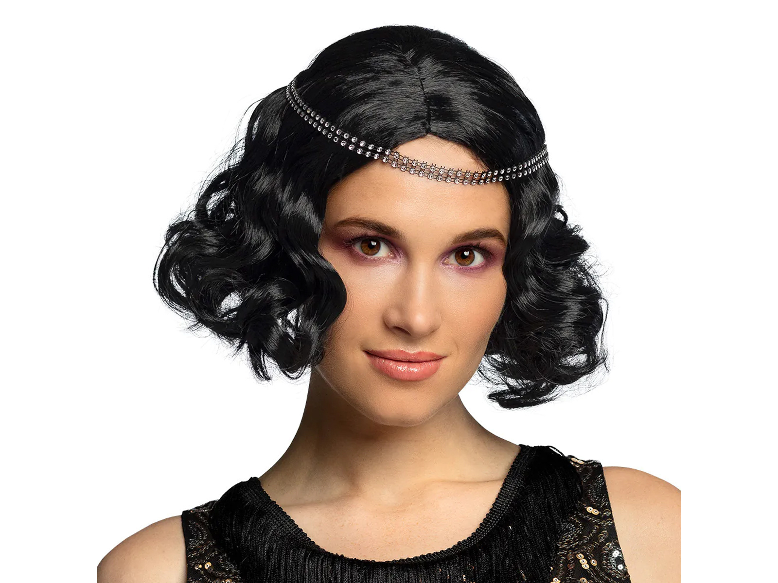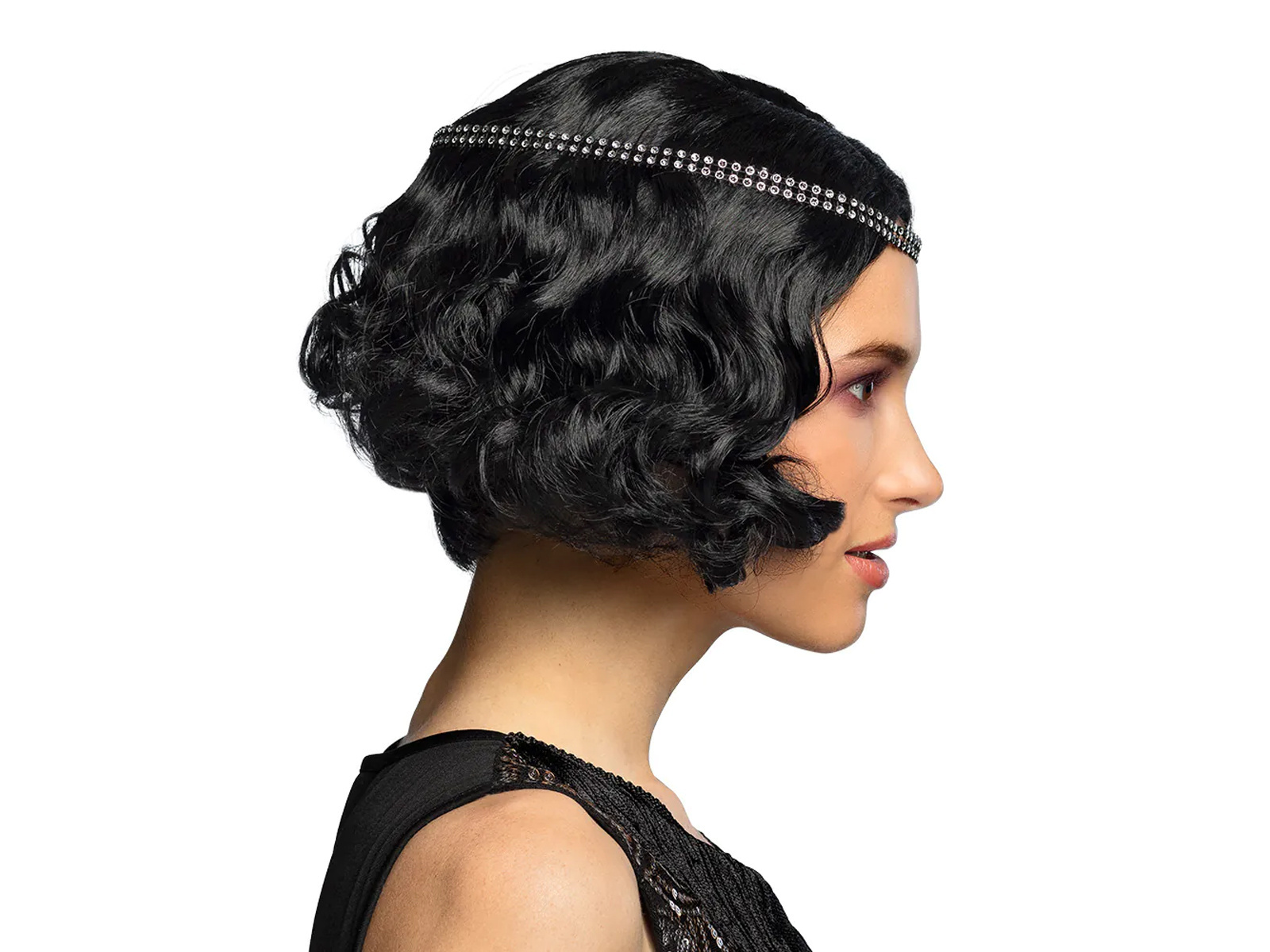 Transportați-vă înapoi în timp în epoca jazzului cu exclusivitatea noastră Peruca retro neagră cu bentiță. Această perucă elegantă amintește de stilul anilor 1920. Se potrivea perfect cu Charleston și costumele flapper ale anilor 1920. Părul sintetic negru strălucitor combinat cu o bentiță elegantă reprezintă un accesoriu sofisticat și rafinat pentru ținuta ta.