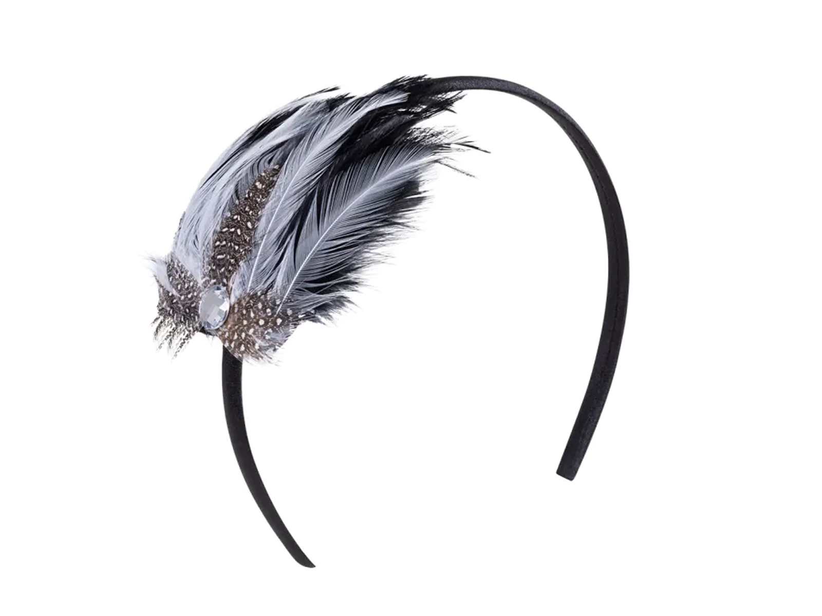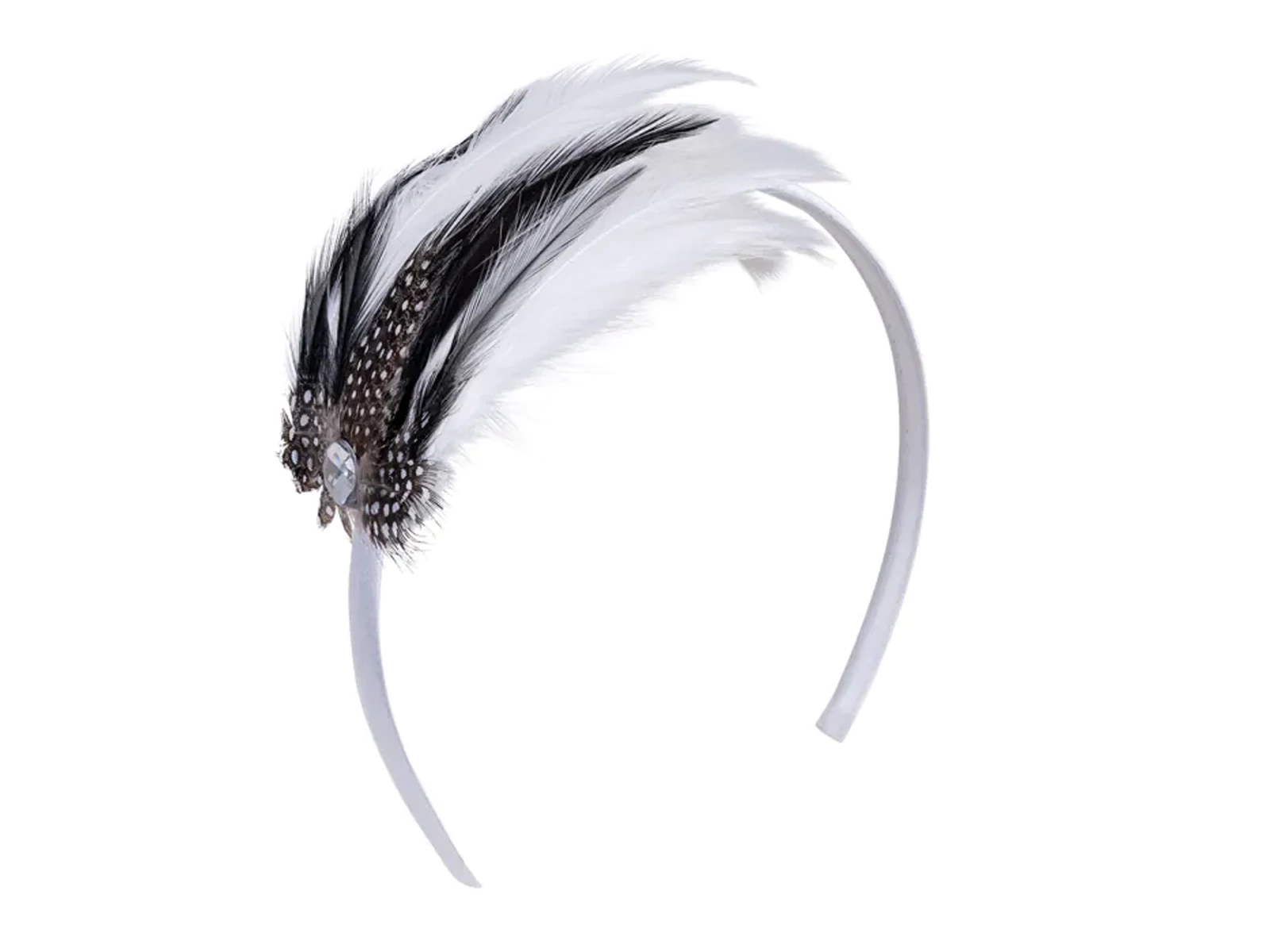 Descoperă un accesoriu neobișnuit pentru a adăuga strălucire ținutei tale de carnaval sau de Revelion! Frumoasă bentiță cu pene un must-have pentru oricine vrea să iasă în evidență. Disponibil în culorile clasice alb și negru, culoarea este trimisă la întâmplare, adăugând un element de surpriză comenzii dvs.