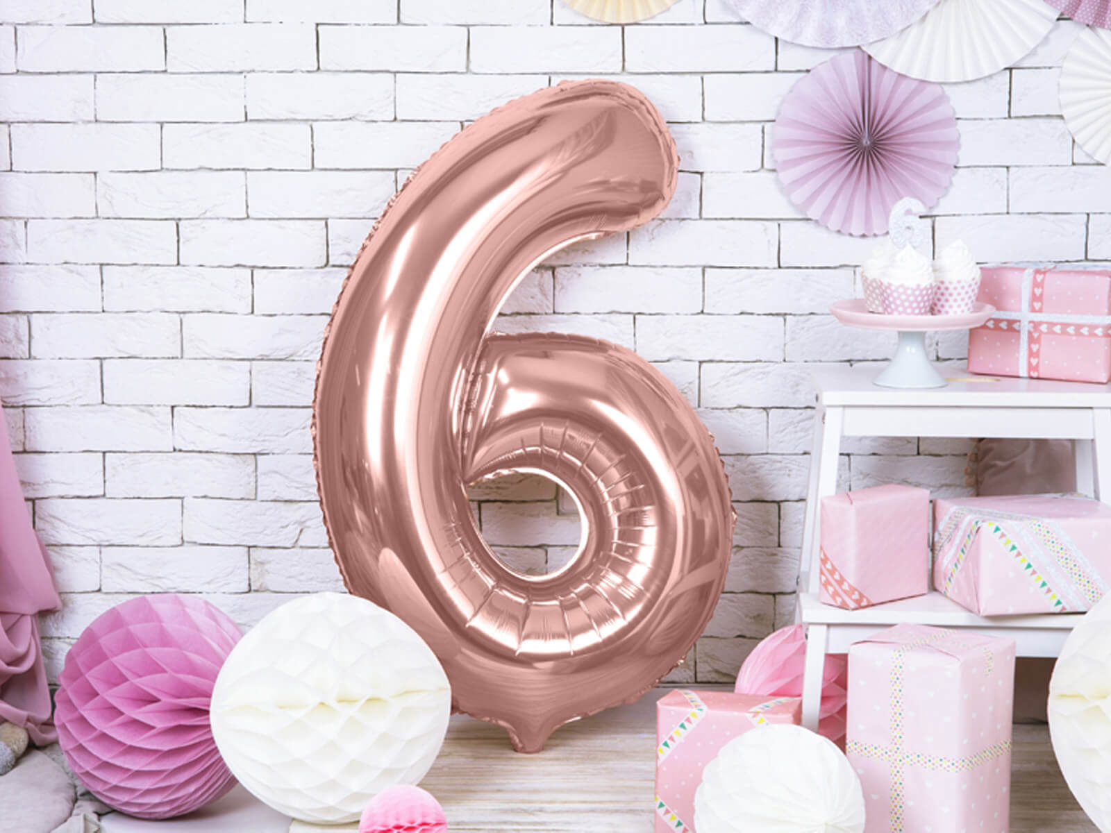 Balon din folie numărul 6 roz auriu - 86 cm - 1 buc.