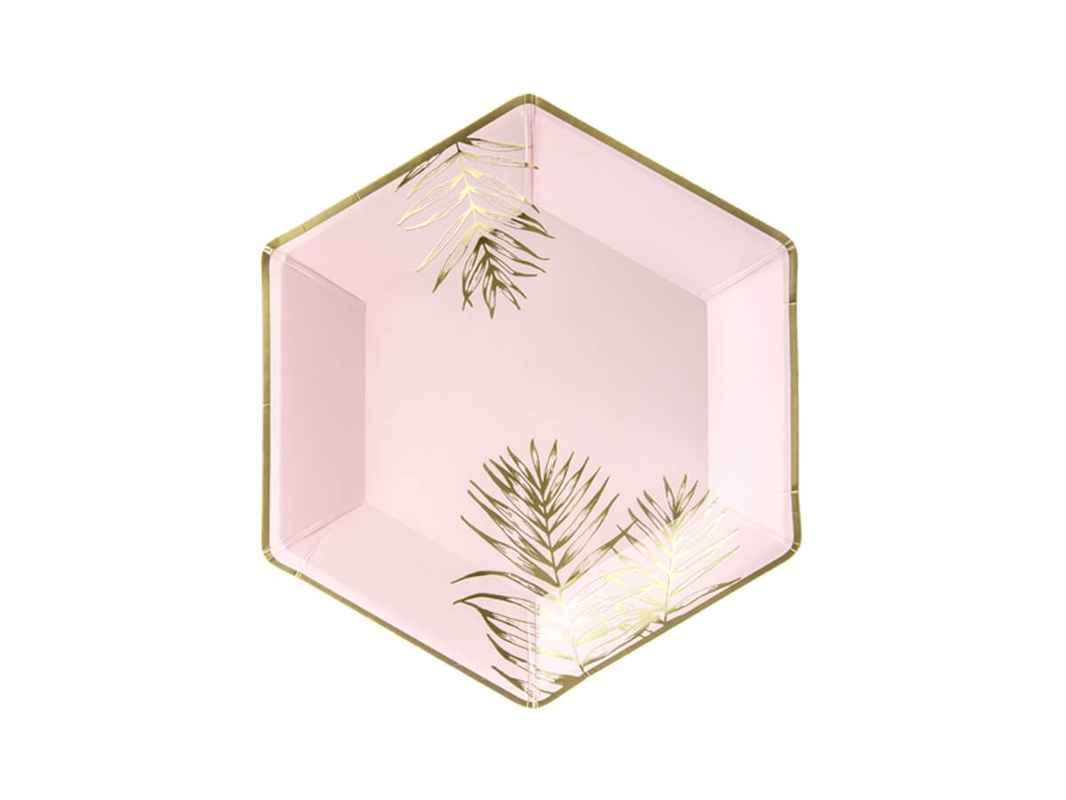 Farfurii cu frunze roz deschis - 23 cm - 6 buc.