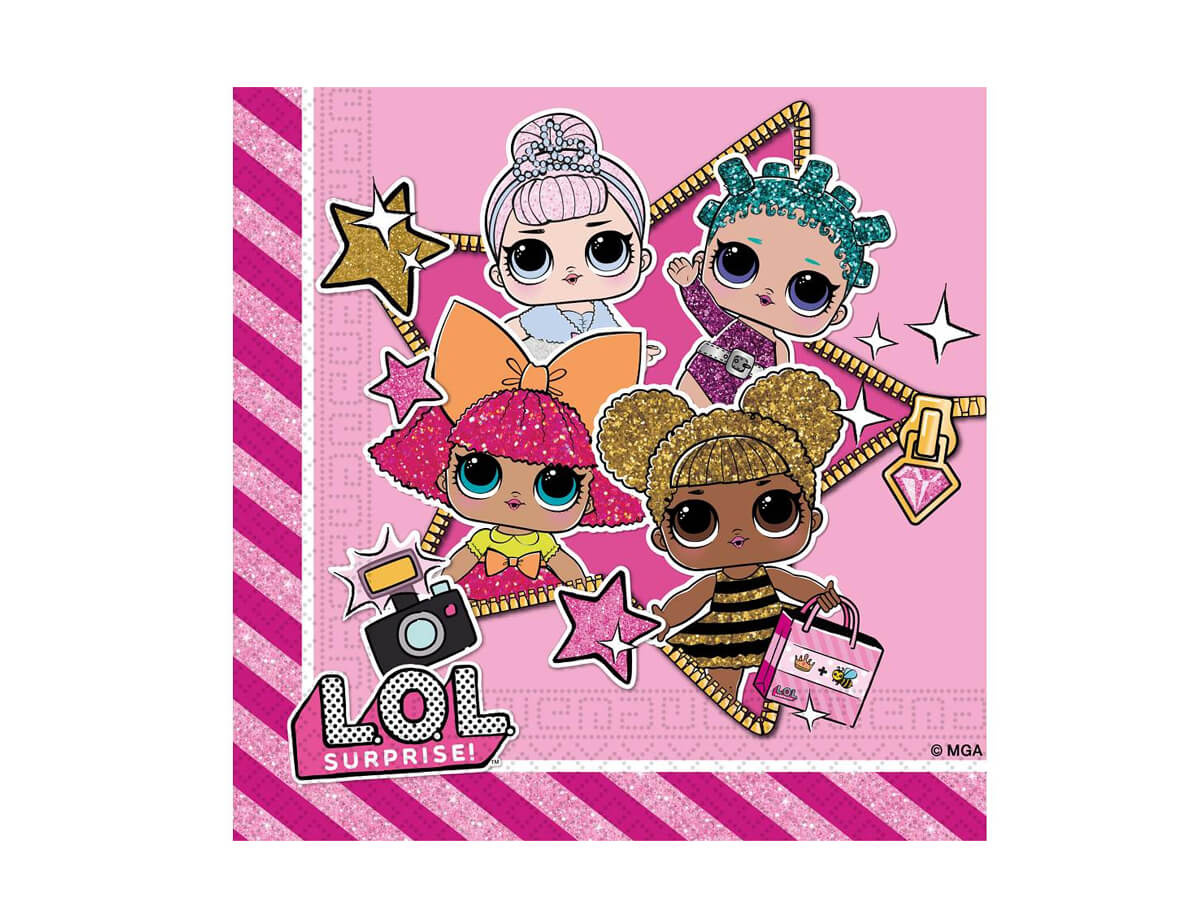 Descoperiți șervețelele noastre LOL Surprise - completarea perfectă pentru orice petrecere aniversară pentru copii. Aceste șervețele unice, inspirate de populara serie de jucării LOL Surprise, cu siguranță vor atrage atenția și vor încânta oaspeții mai tineri.