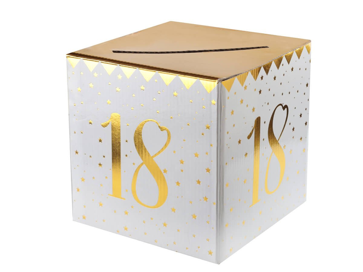 Descoperiți cutia noastră de plicuri pentru felicitări, cadouri pentru 18 ani - plusul perfect pentru orice petrecere de 18 ani. Fabricată din materiale de înaltă calitate, cutia noastră nu este doar practică, ci și elegantă. Un fundal alb cu un imprimeu auriu subtil "18" adaugă o notă unică, care cu siguranță va atrage atenția oaspeților.