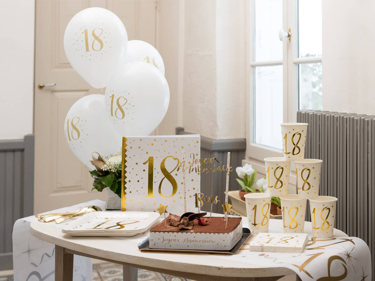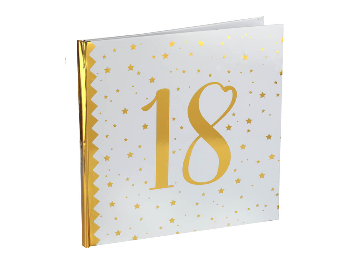 Vă invităm să descoperiți cartea noastră de oaspeți albă tipărită 18 - amintirea perfectă pentru cea de-a 18-a aniversare. Legată în hârtie albă cu un imprimeu auriu sofisticat "18", această carte de oaspeți elegantă nu este doar un accesoriu elegant pentru orice sărbătoare, ci și un testament de durată pentru acele momente de neuitat.