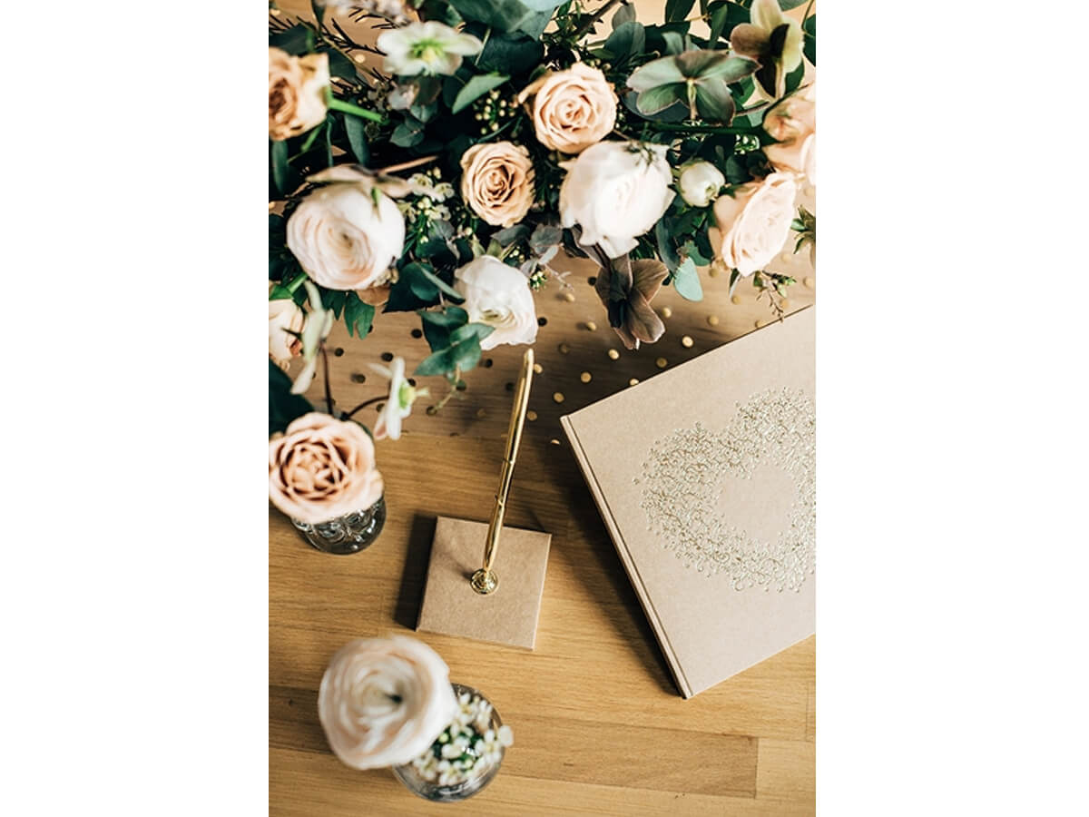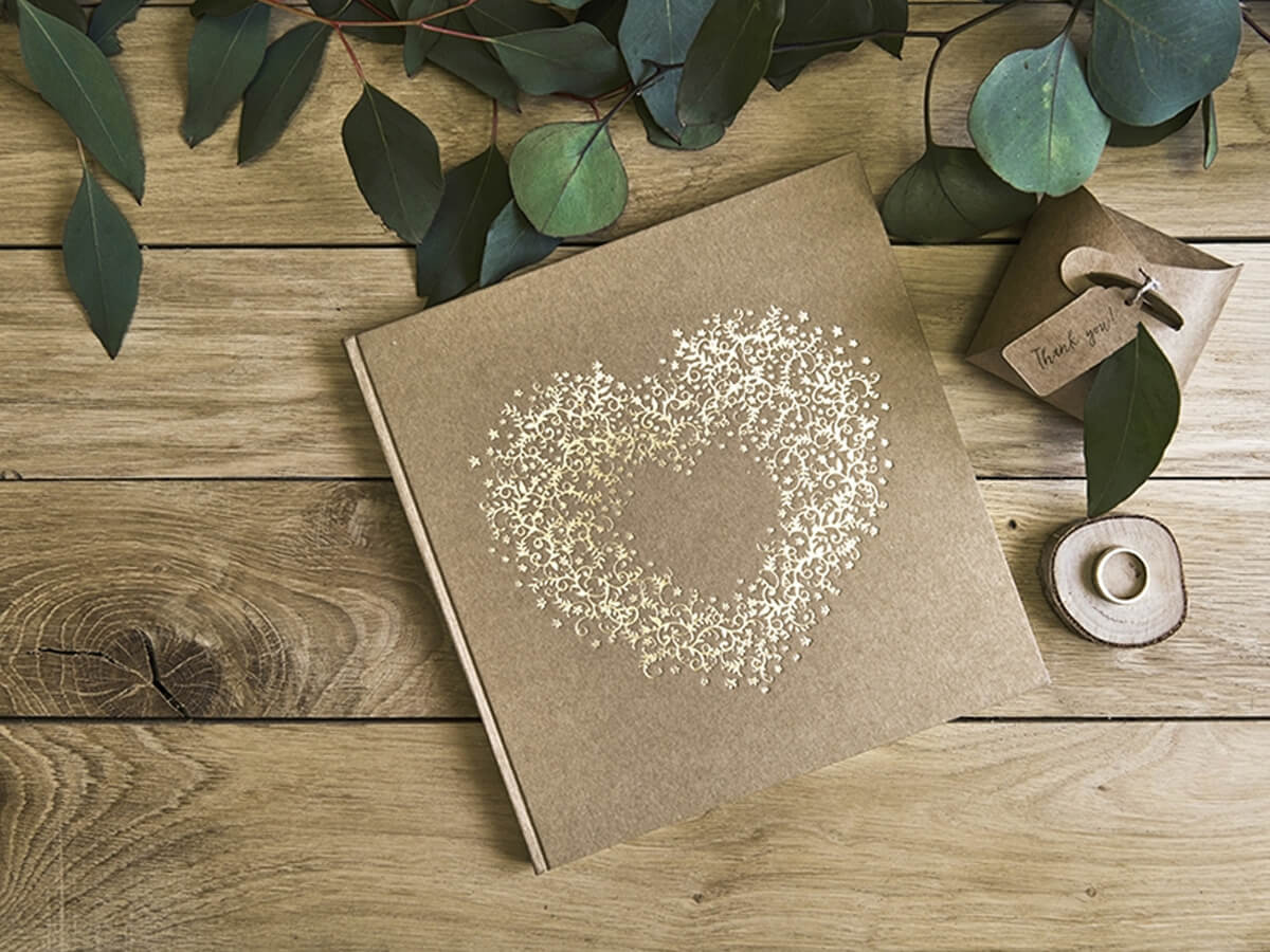 Carte de oaspeți de nuntă în maro cu design auriu - 22 pagini