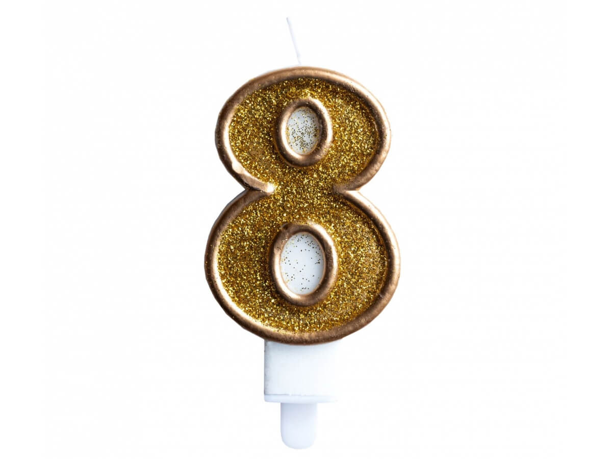 Lumânare numerică cu margine aurie și sclipici auriu - 8 - 1 buc.
