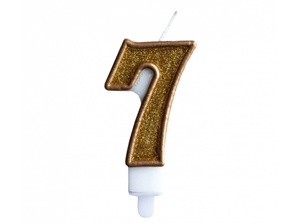 Lumânare numerică cu margine aurie și sclipici auriu - 7 - 1 buc.