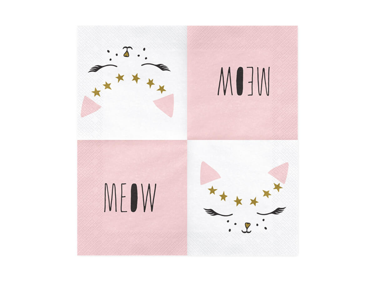 Descoperiți șervețelele noastre Birthday Cat - perfecte pentru orice iubitor al acestor creaturi adorabile. Aceste șervețele albe, decorate cu o imprimare delicată, nu sunt doar practice, ci și un element decorativ unic pe orice masă aniversară.