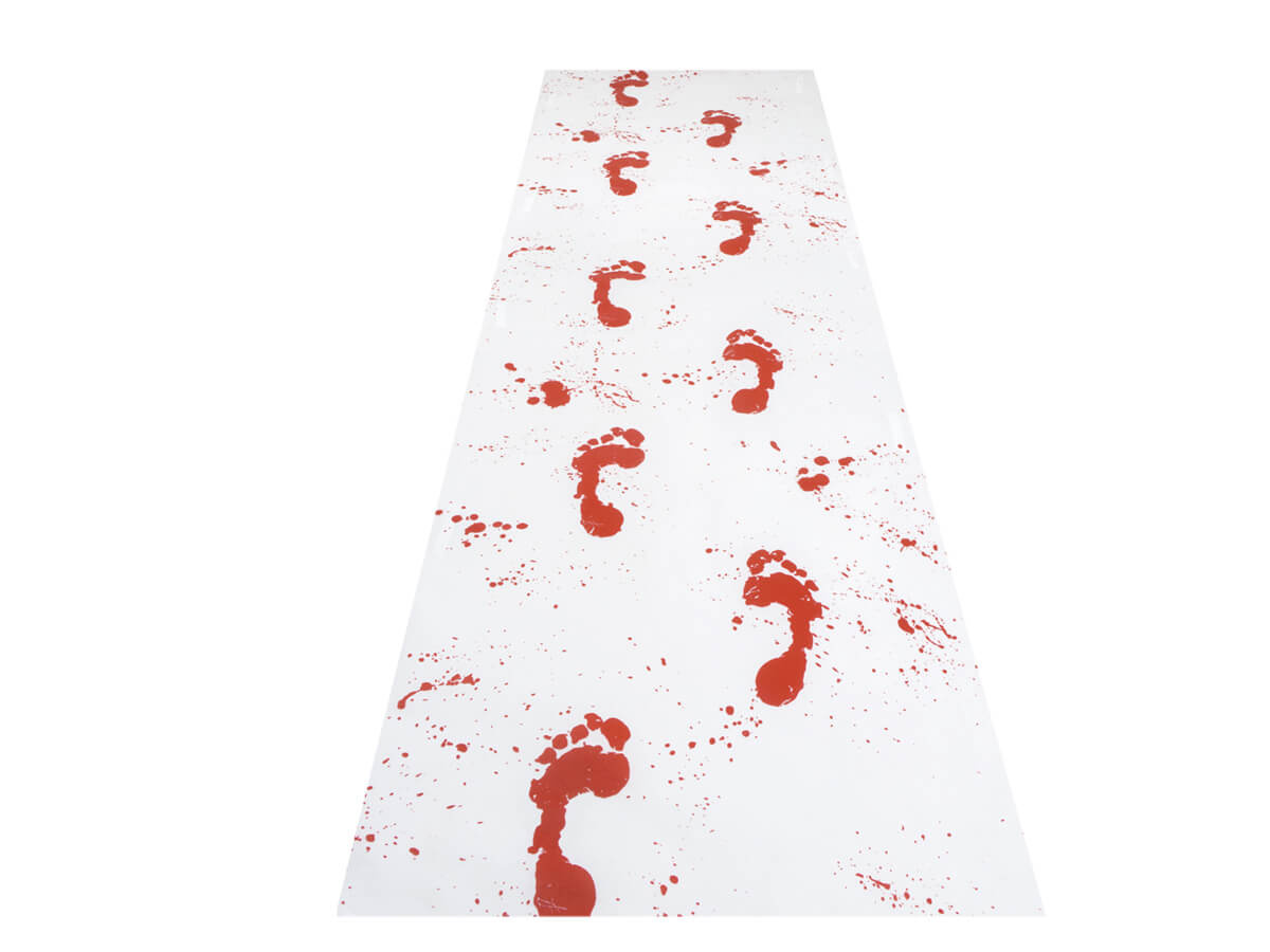 Intrați în spiritul Halloween-ului cu covorul nostru alb cu urme de picioare însângerate. Acest produs unic este un decor ideal care va atrage atenția tuturor celor care trec pragul casei dvs.