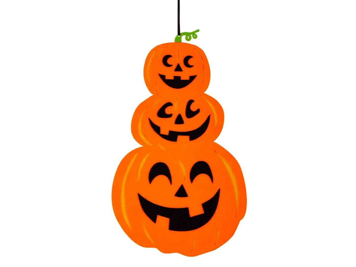 Decorul prezintă o serie de dovleci zâmbitori care vor aduce veselia de Halloween în orice colț. Acesta poate fi folosit ca element decorativ principal sau ca o completare a altor elemente ale decorului de Halloween. Atractiv și colorat, va fi un accent deosebit pentru petreceri și ocazii speciale.