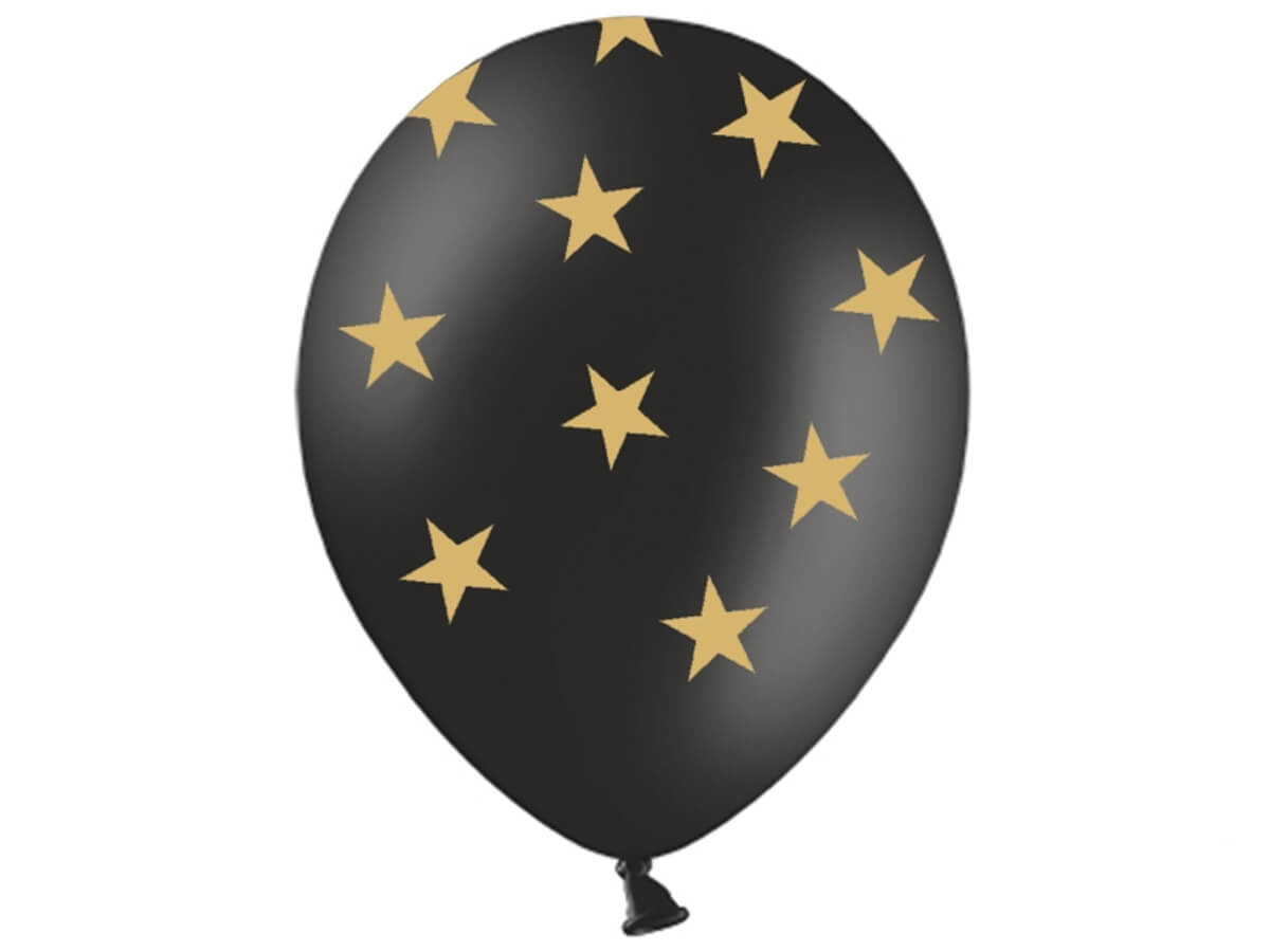 Baloane pastelate negre cu stele - 37 cm - 6 buc.