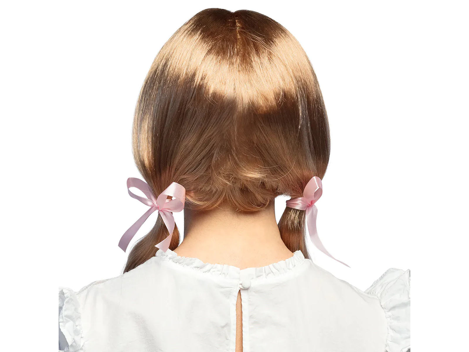 Vă invităm să cumpărați și să descoperiți magia peruca noastră blondă cu cozi de cal și panglici.