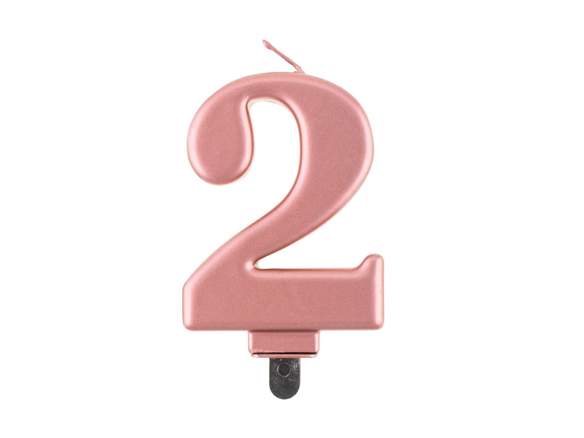 Lumânare cu număr metalic auriu roz - 2 - doi