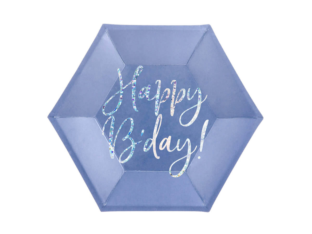 Farfurii aniversare albastru marin Happy B'day - 20 cm - 6 buc.