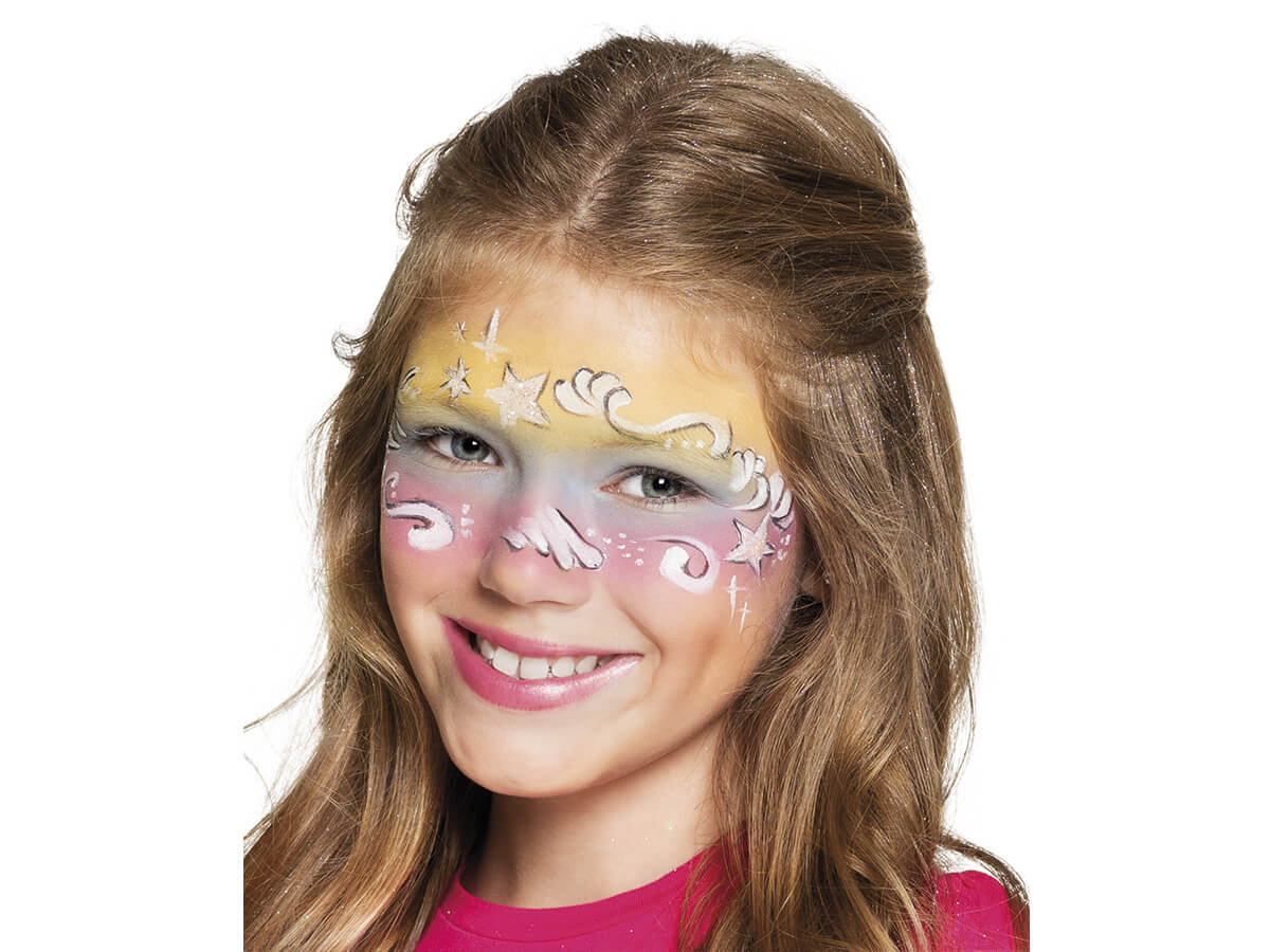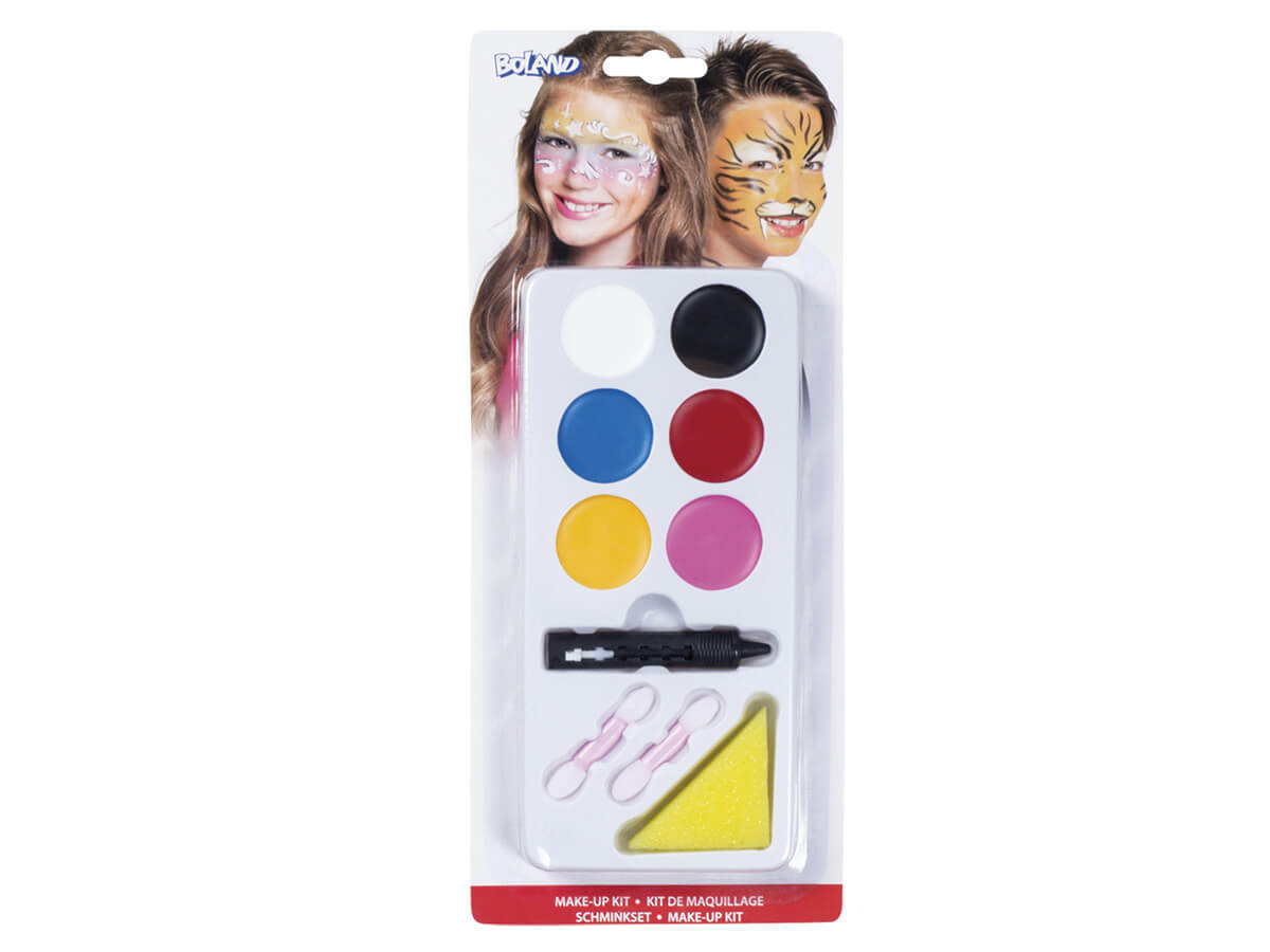 Kitul vine cu un creion negru pentru contururi precise, un burete pentru o aplicare ușoară și uniformă și două pensule pentru a adăuga detalii. Echipamentul cuprinzător permite o gamă largă de creații, de la accente minore până la pictura completă a feței.