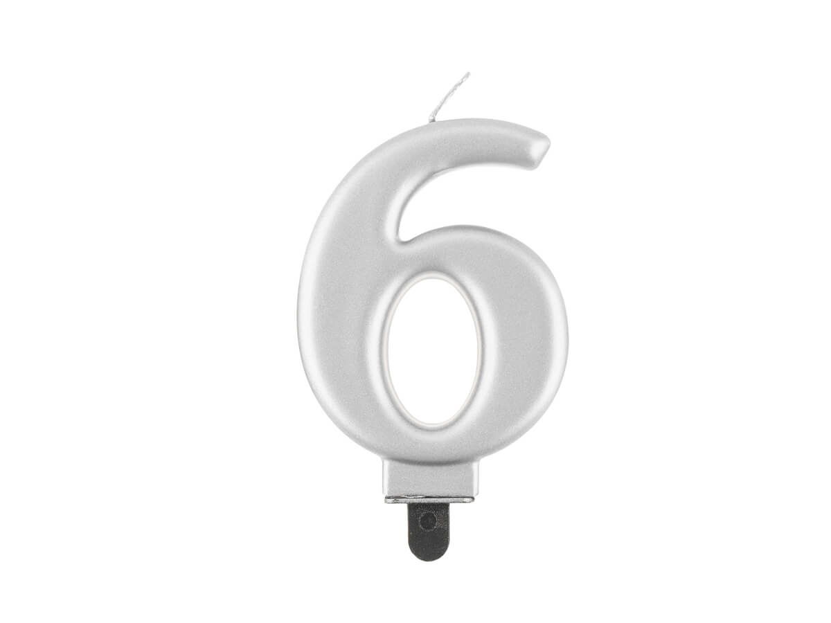 Lumânare cu număr metalic argintiu - 6 - șase