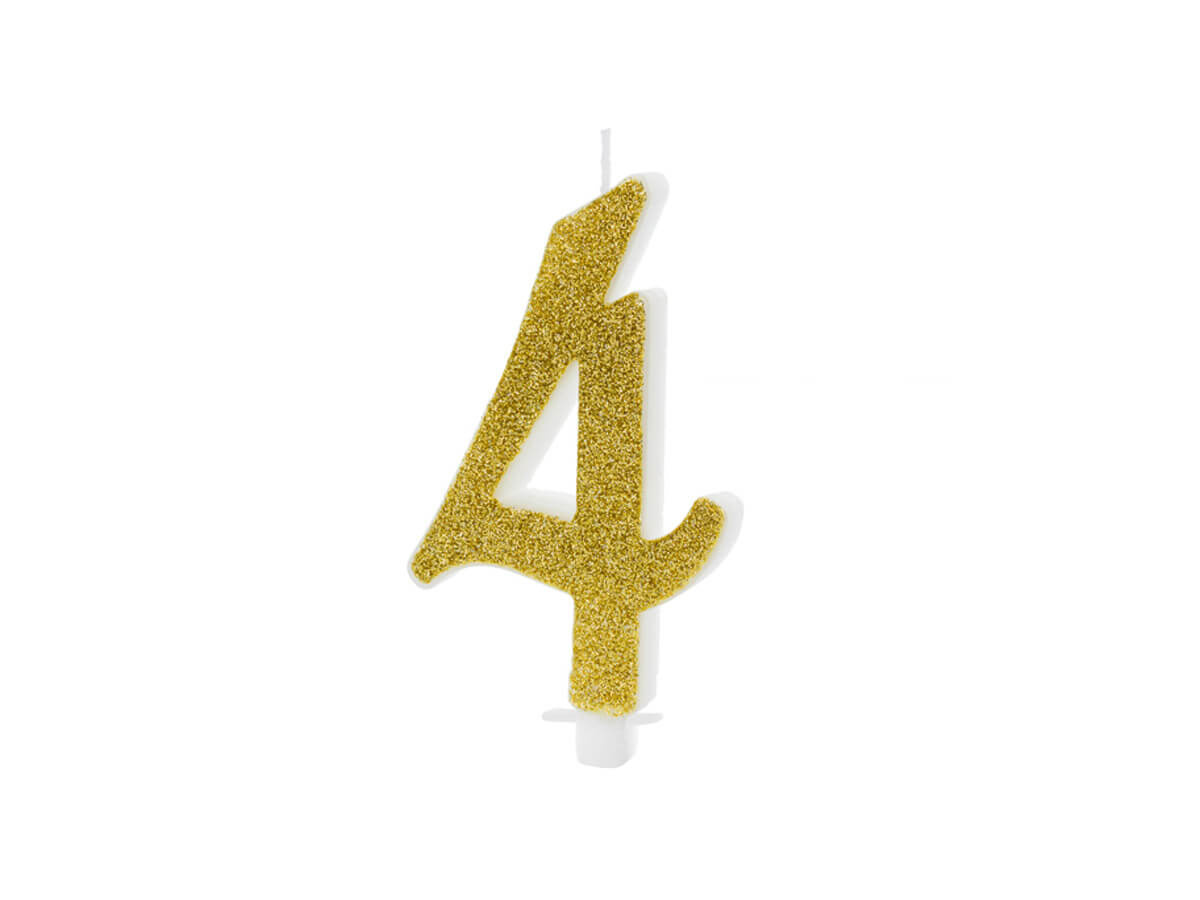 Lumânare numerică cu sclipici auriu - 4 - 1 buc.
