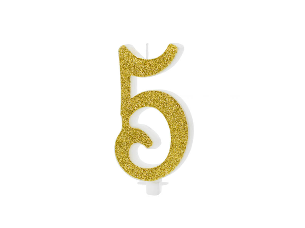 Lumânare numerică cu sclipici auriu - 5 - 1 buc.