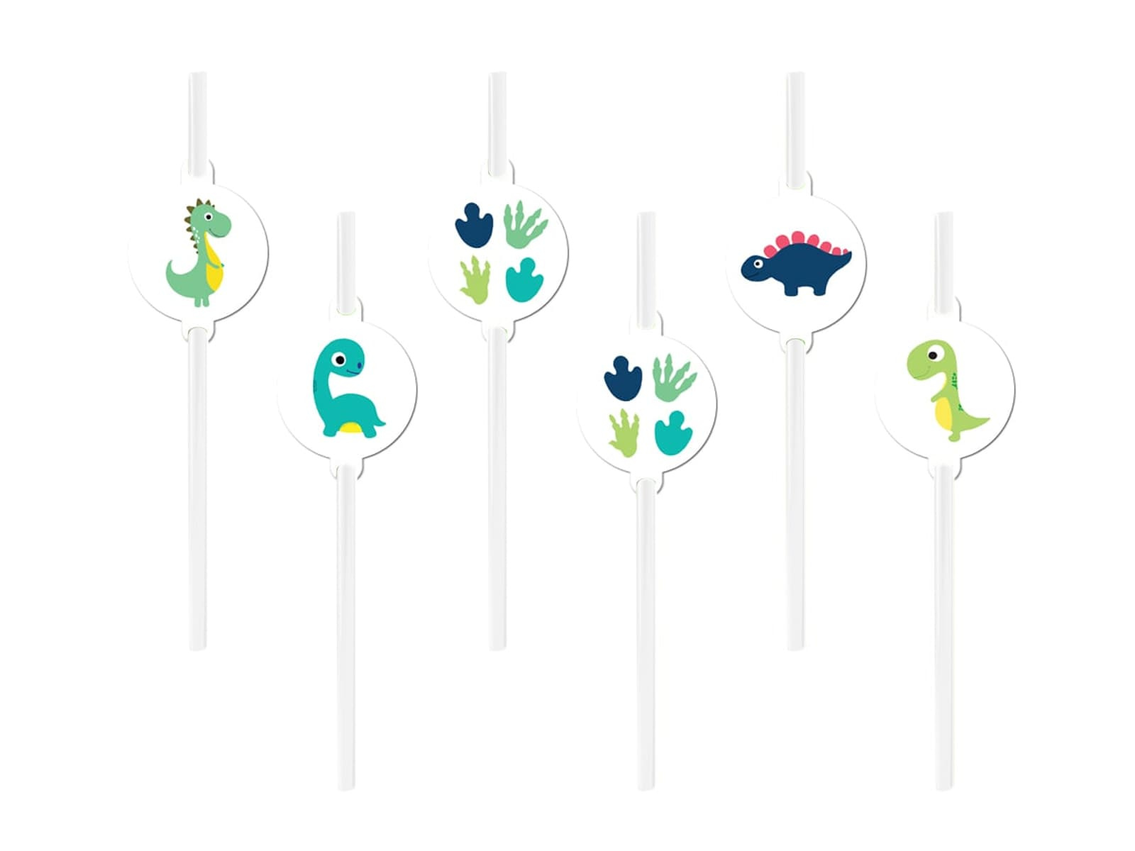 Paiele de ziua de naștere Happy Dinosaurs nu sunt doar un plus practic pentru băuturi, ci și o decorațiune de masă uimitoare. Fiecare pai are o lungime de 20 cm și este decorat cu un medalion cu diametrul de 4 cm cu un dinozaur simpatic. Setul conține 6 piese, permițând servirea unui grup mai mare de oaspeți.