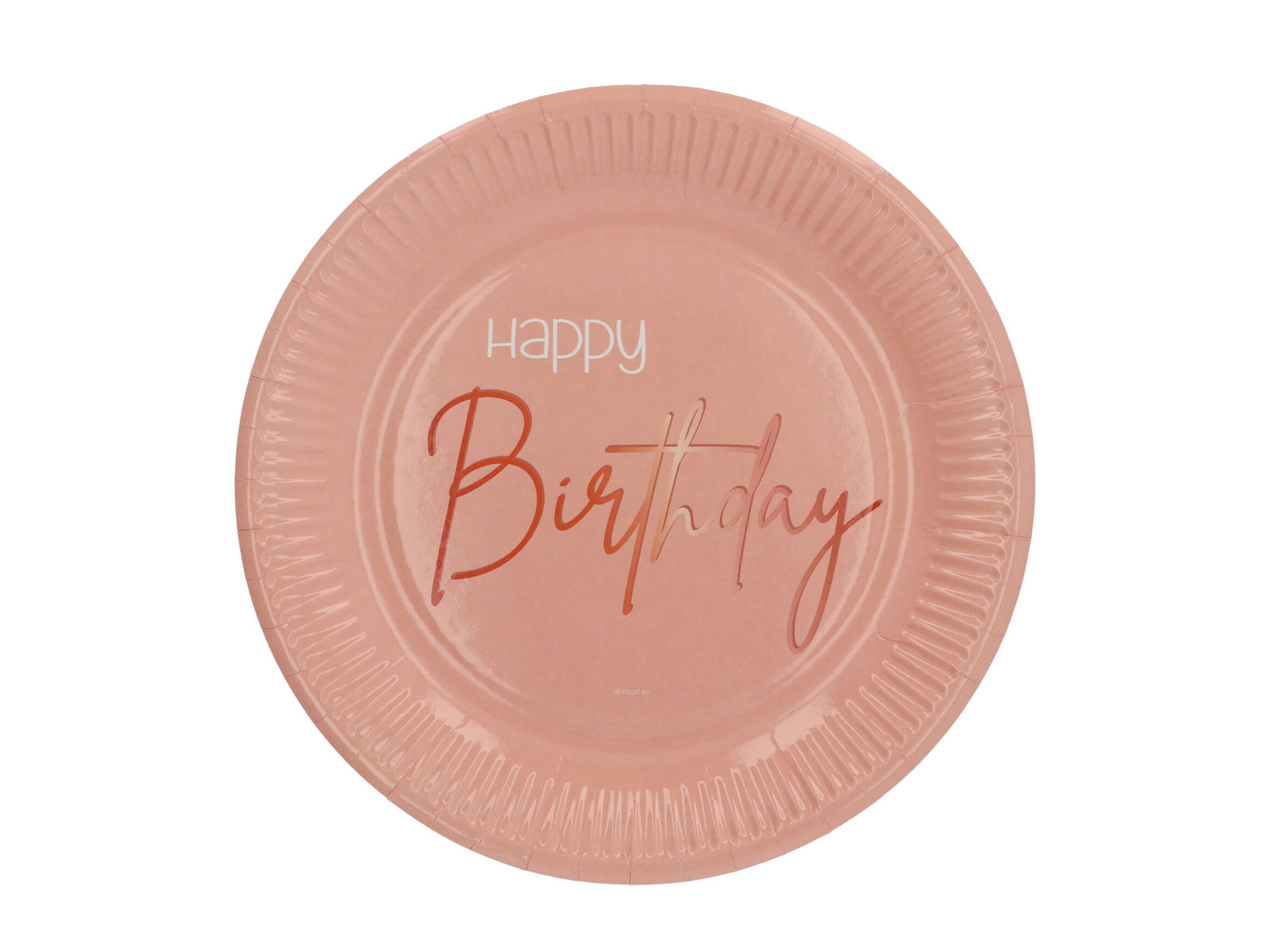 Farfurii aniversare roz Happy Birthday - 23 cm - 8 buc.