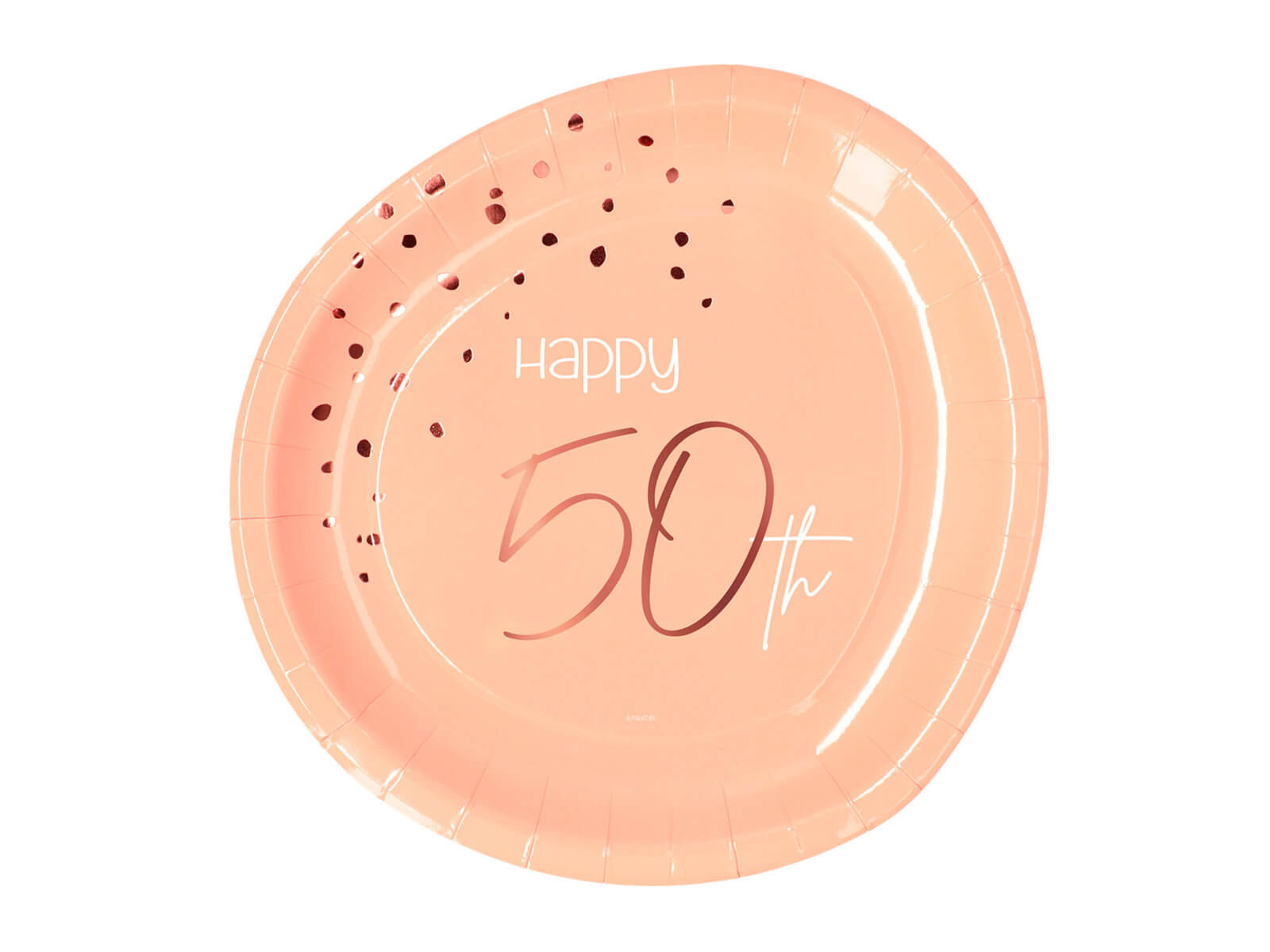Farfurii aniversare 50 de ani cu piersici - 23 cm - 8 buc.