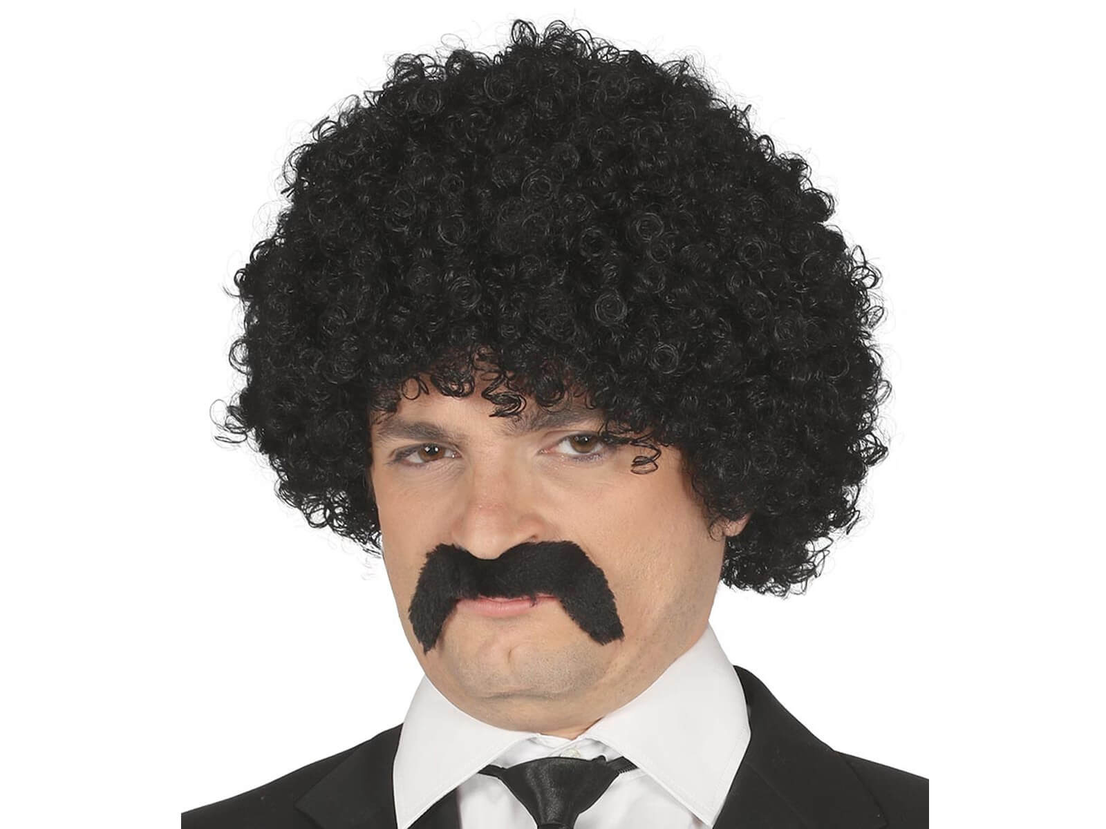 Peruca neagră cu păr creț și mustață - 1 buc.