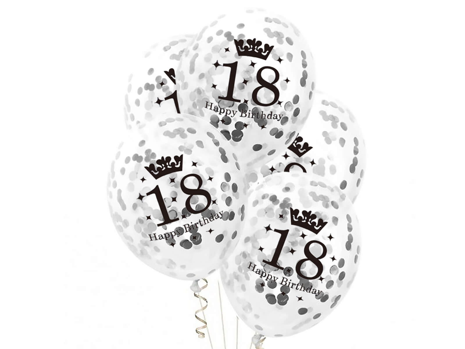 Baloane transparente cu confetti argintii pentru petrecerea celei de-a optsprezecea aniversări - 30 cm - 5 buc