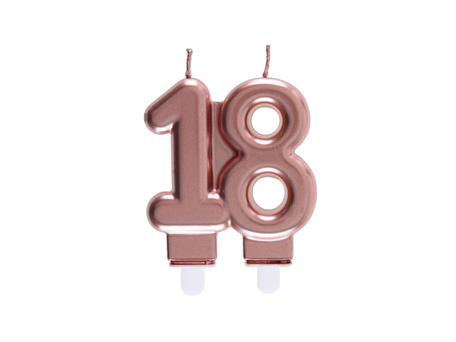 Lumânare "18" din aur roz - perfectă pentru o petrecere aniversară de optsprezece ani