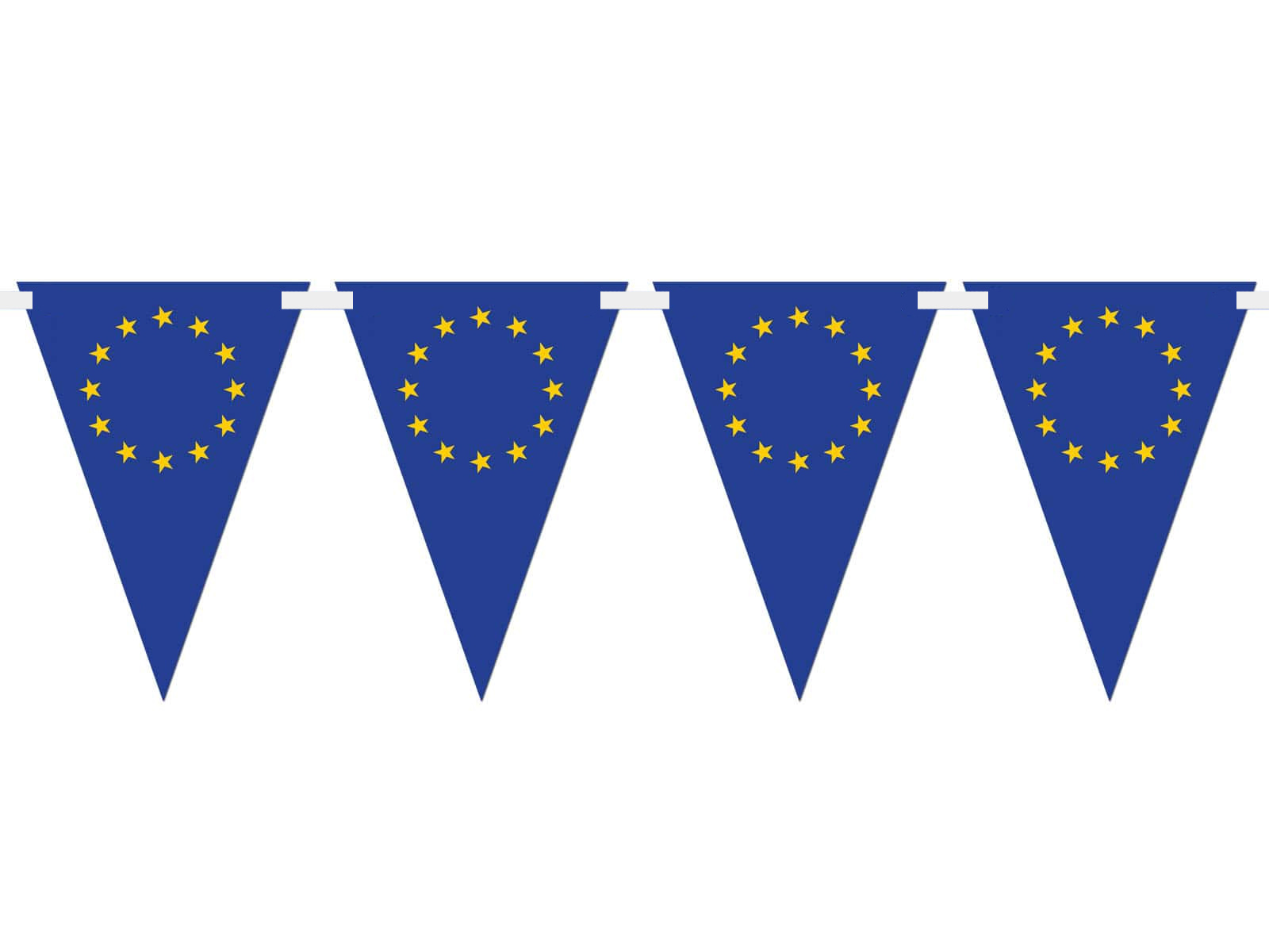 Steagul triunghiular din setul Steaguri ale statelor este un set de 14 steaguri de hârtie de 10,5x15 cm fiecare, plus aproximativ 5 metri de panglică. Steagul Uniunii Europene, fabricat din materiale de înaltă calitate, garantează durabilitatea și rezistența la diferite condiții meteorologice. Se distinge prin meticulozitatea manoperei și a esteticii sale, ceea ce îl face deosebit de izbitor.
